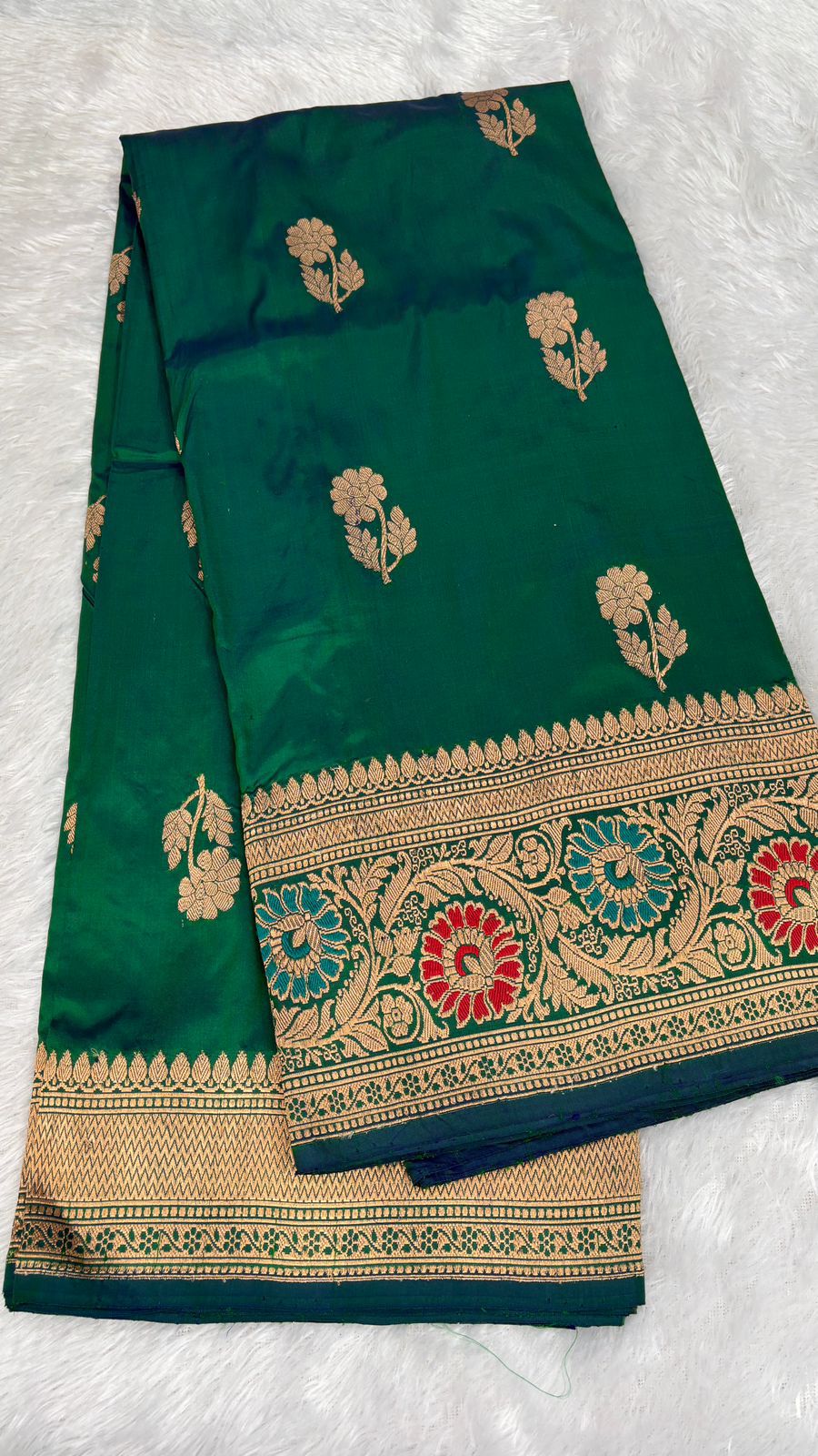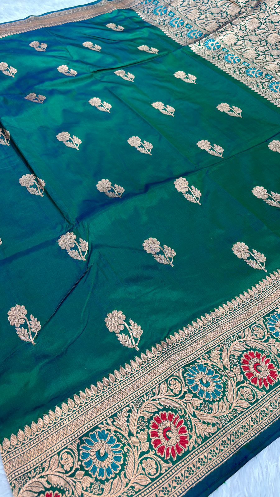 Luxurious Emerald Green Katan Silk Banarasi Handloom Saree with Meenakari Border