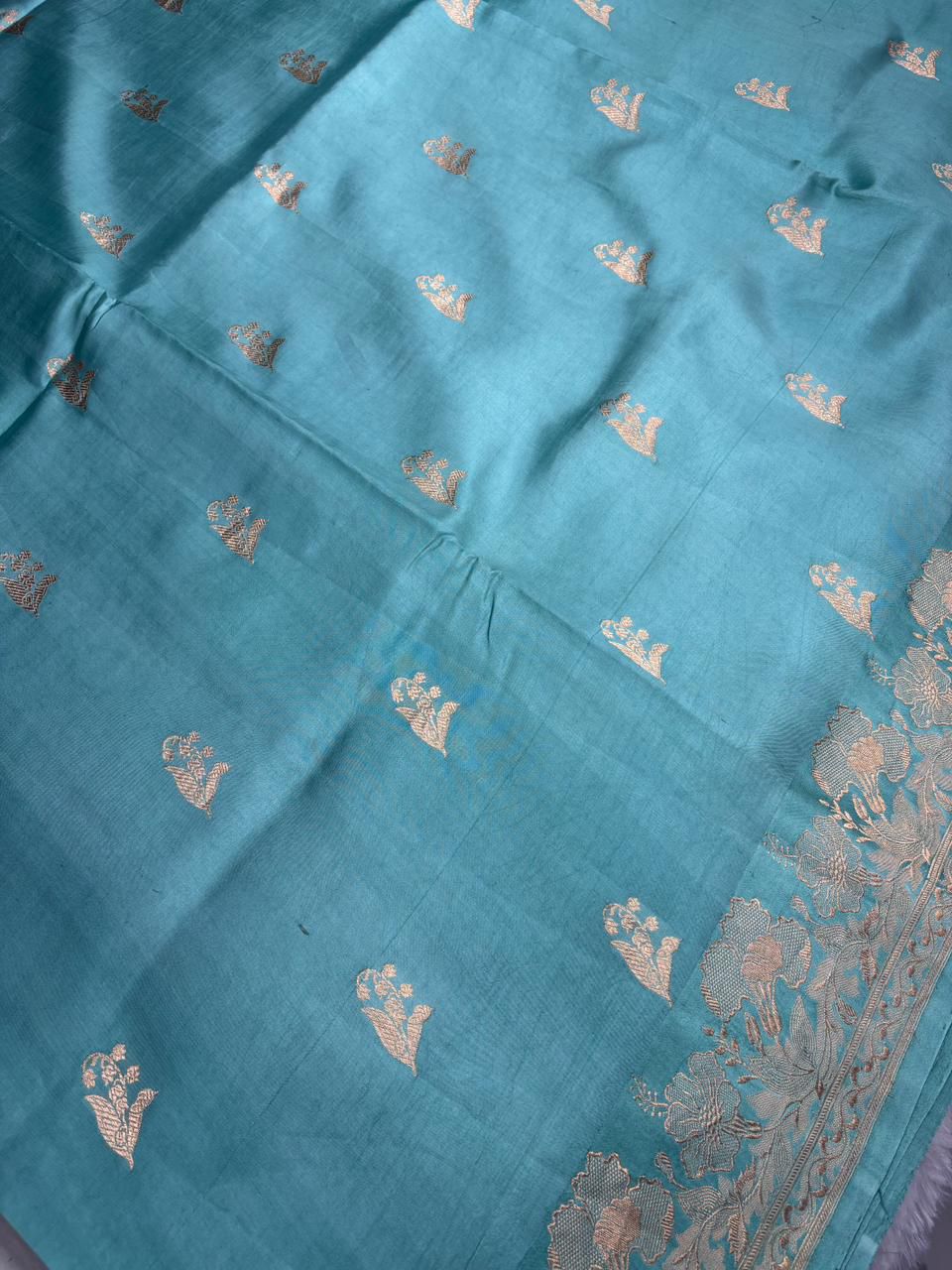 Teal Blue Katan Light Weight Silk Kadhua Handloom Saree