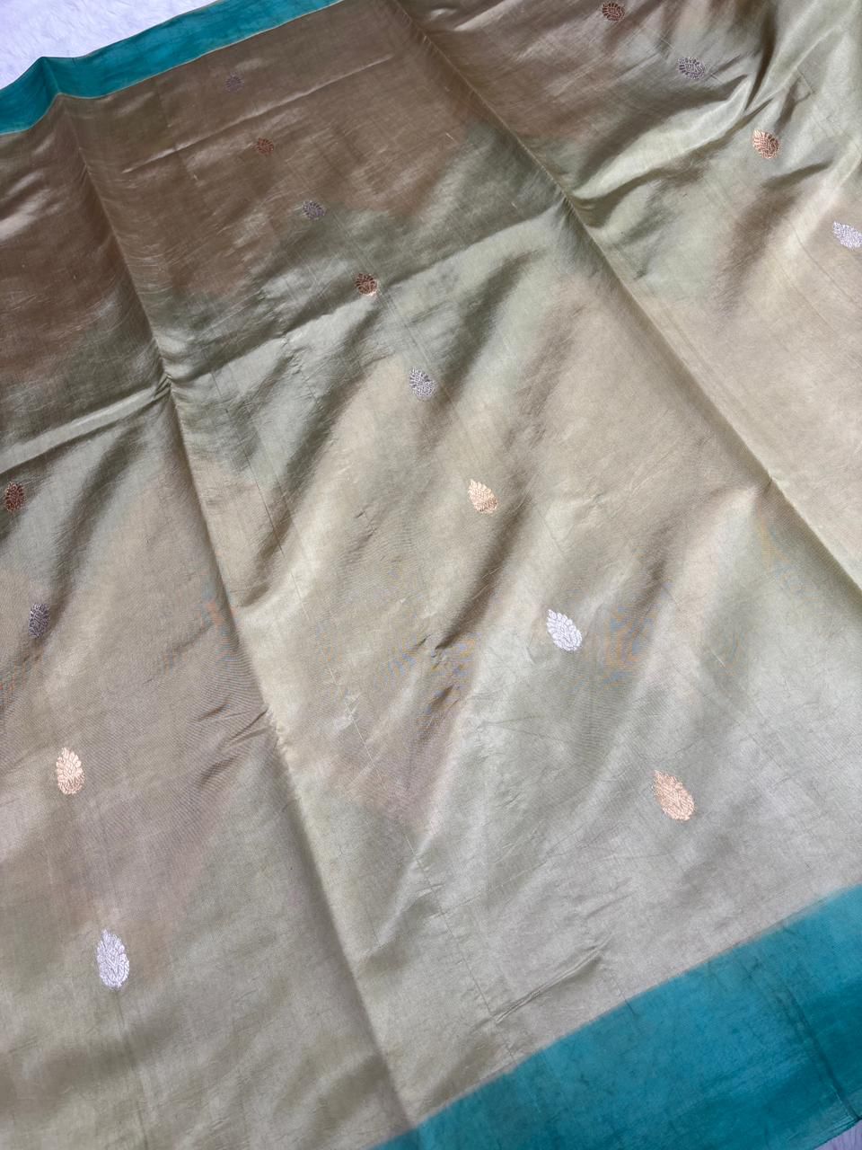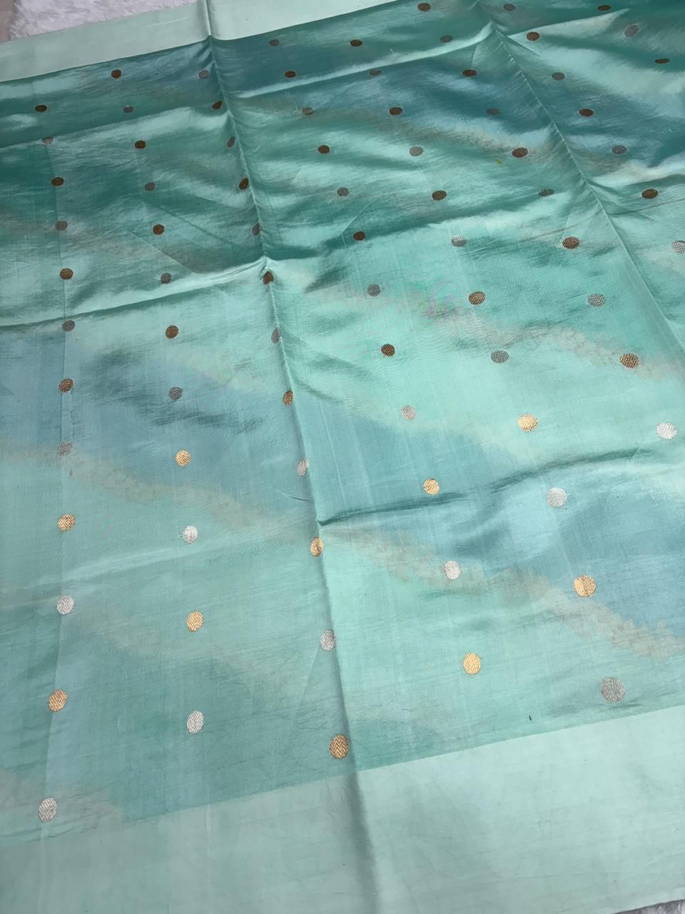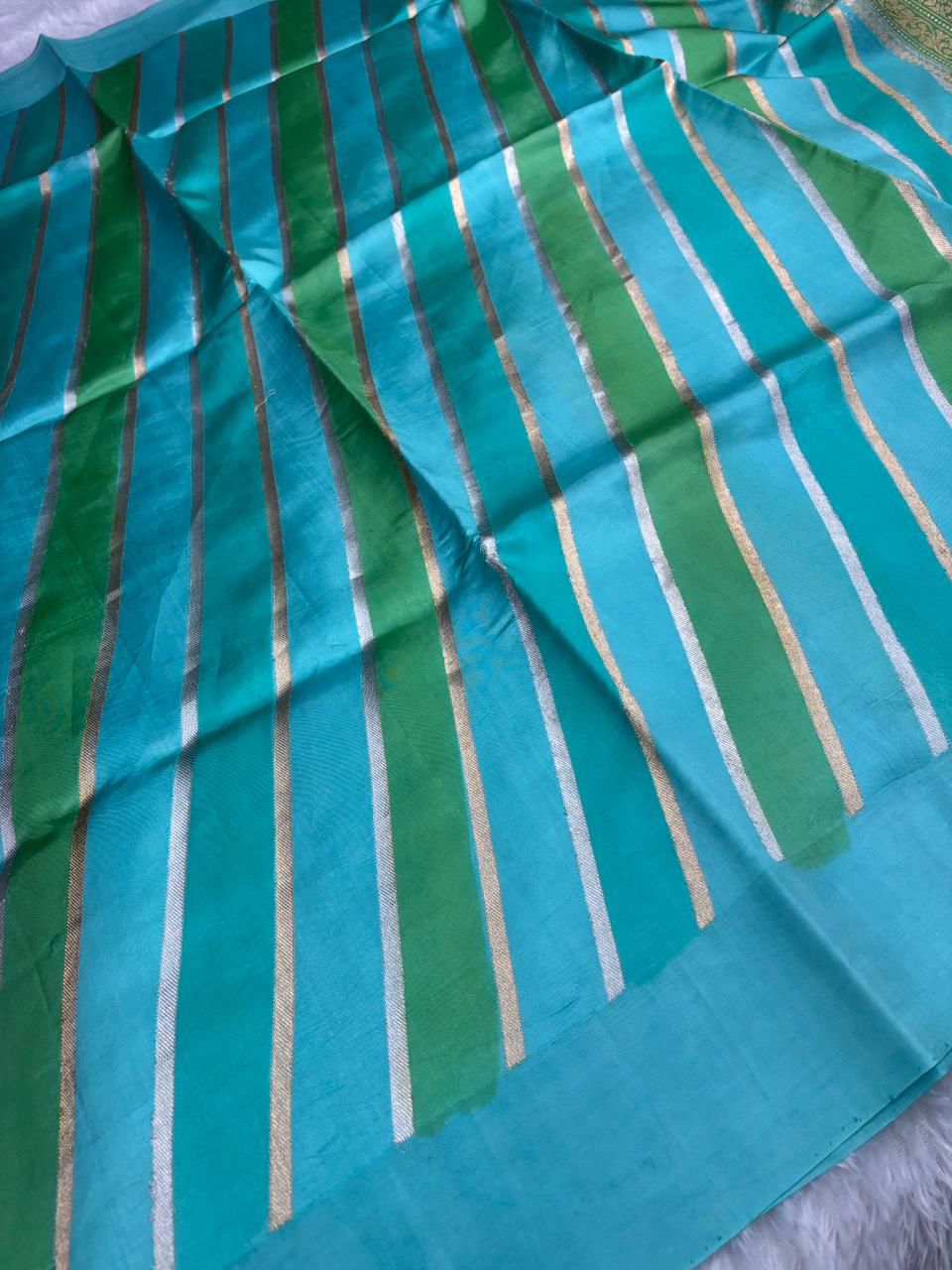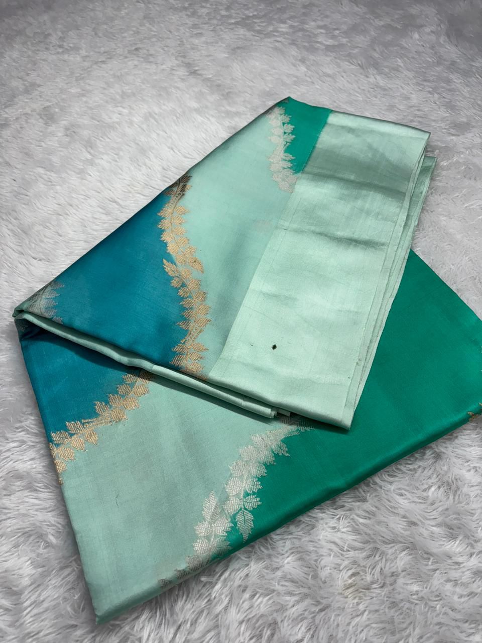 Teal & Green Rungkaat Katan Silk Light Weight Kadhua Saree