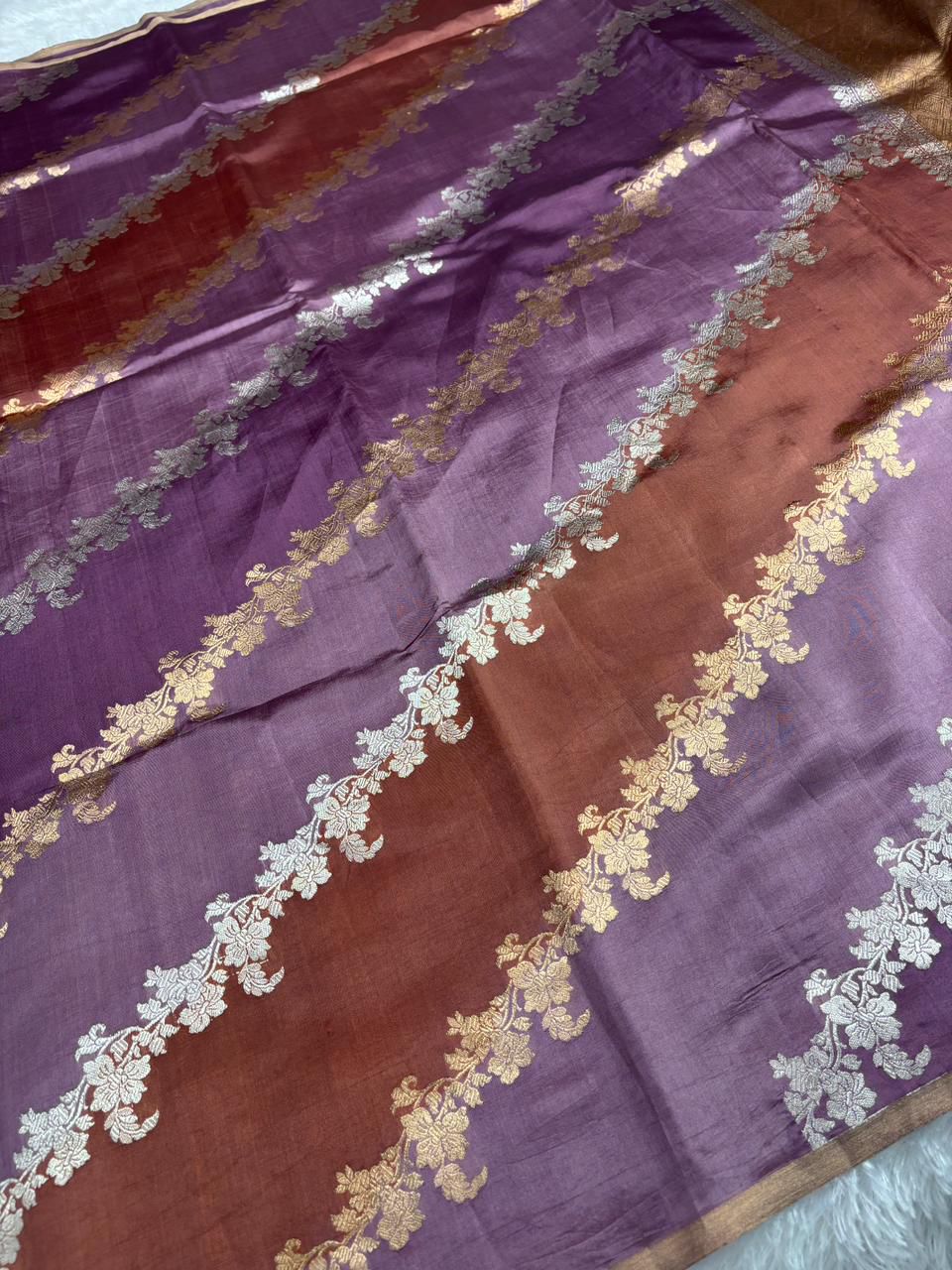 The Dual Tone Royalty: Purple & Rust Rungkaat Katan Silk Saree