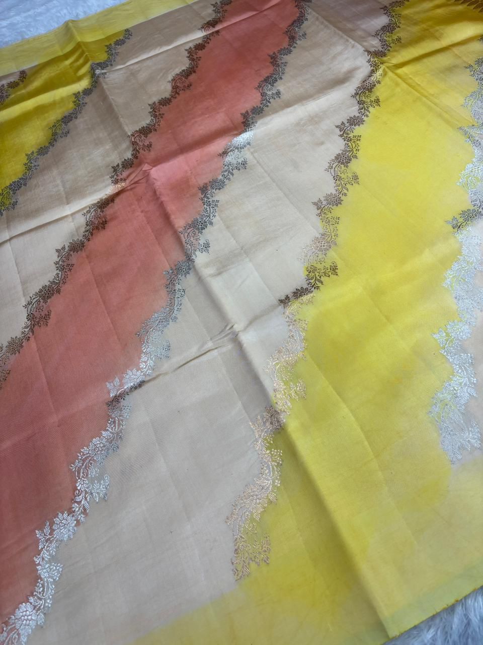 The Pastel Dawn: Yellow & Peach Rungkaat Katan Silk Saree