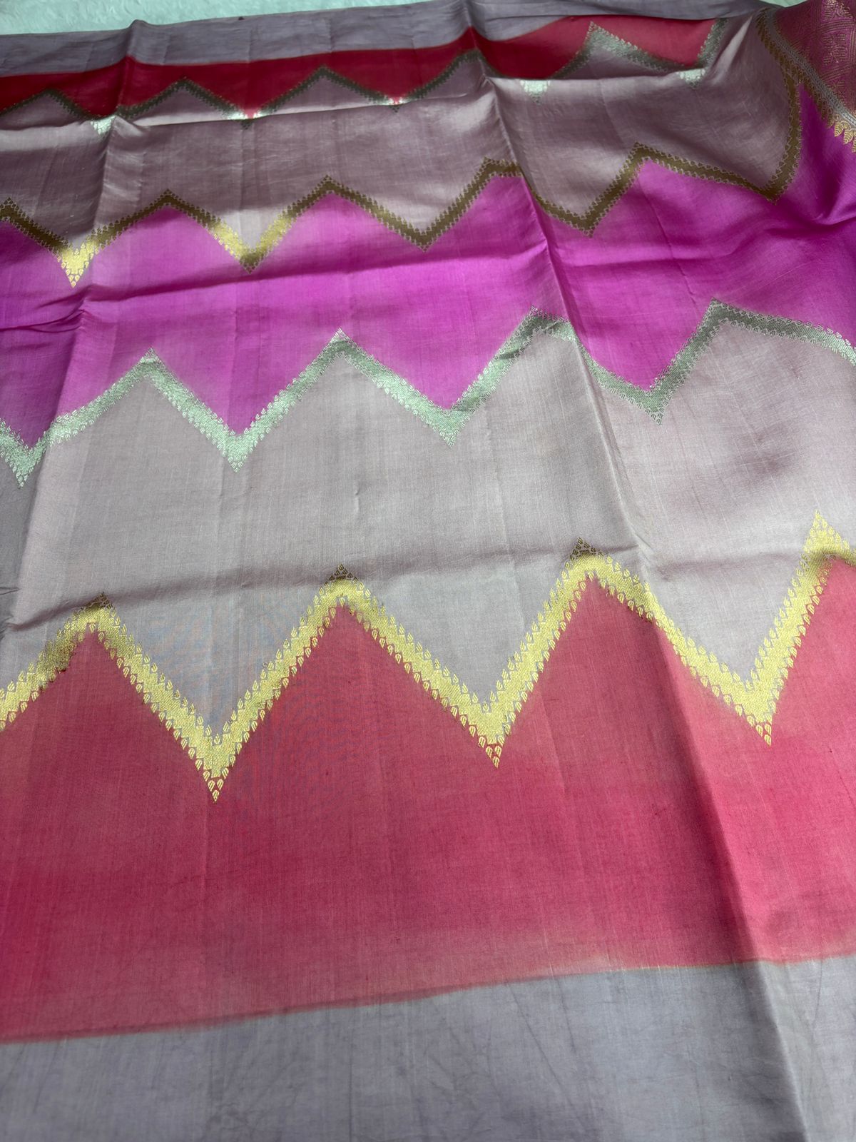 The Geometric Rose: Pink & Magenta Rungkaat Katan Silk Light Weight Saree