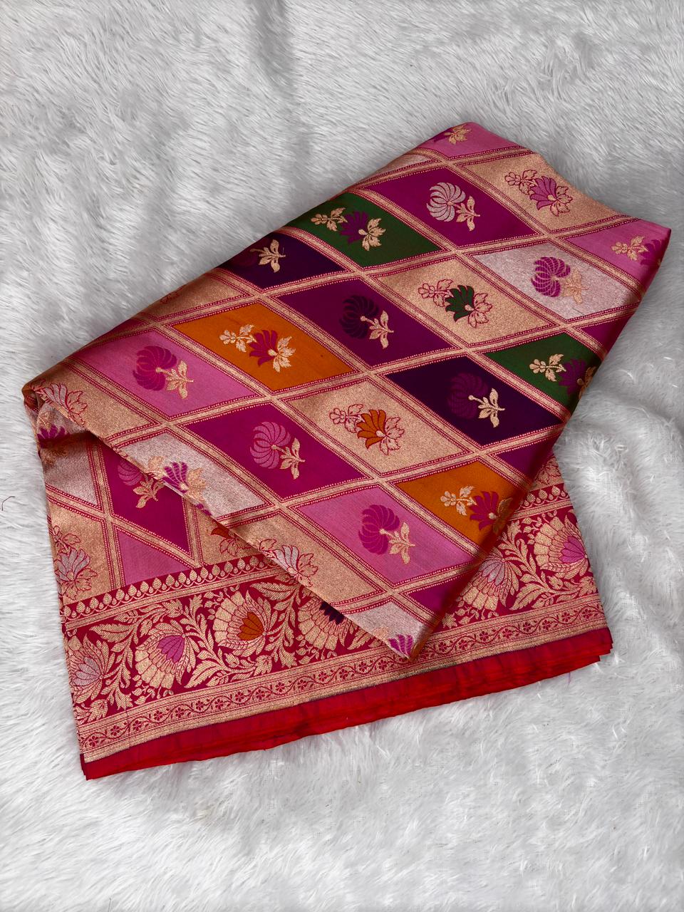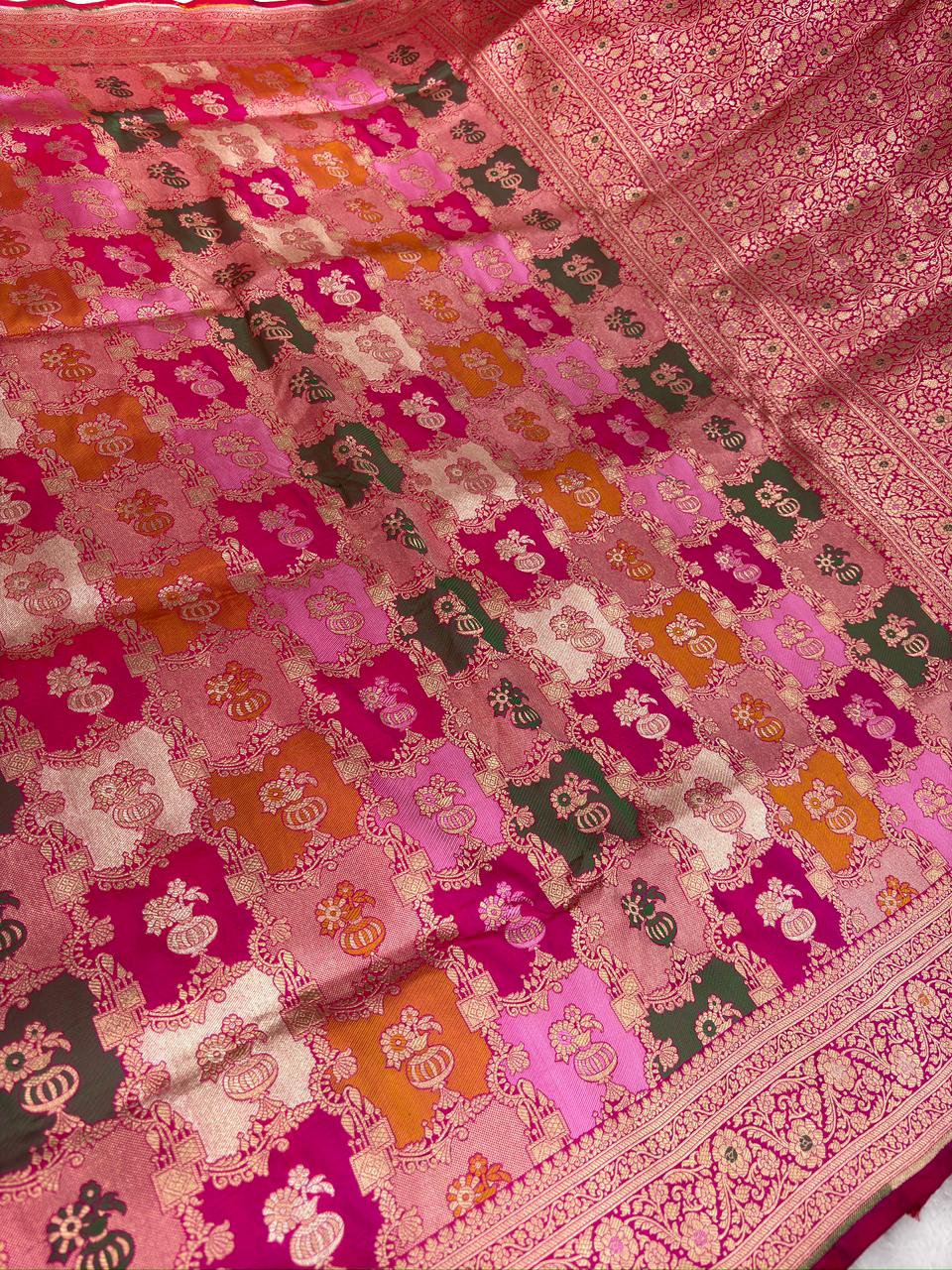 Ethereal Pink & Cream Scalloped Rangkaat Pure Katan Silk Handloom Saree
