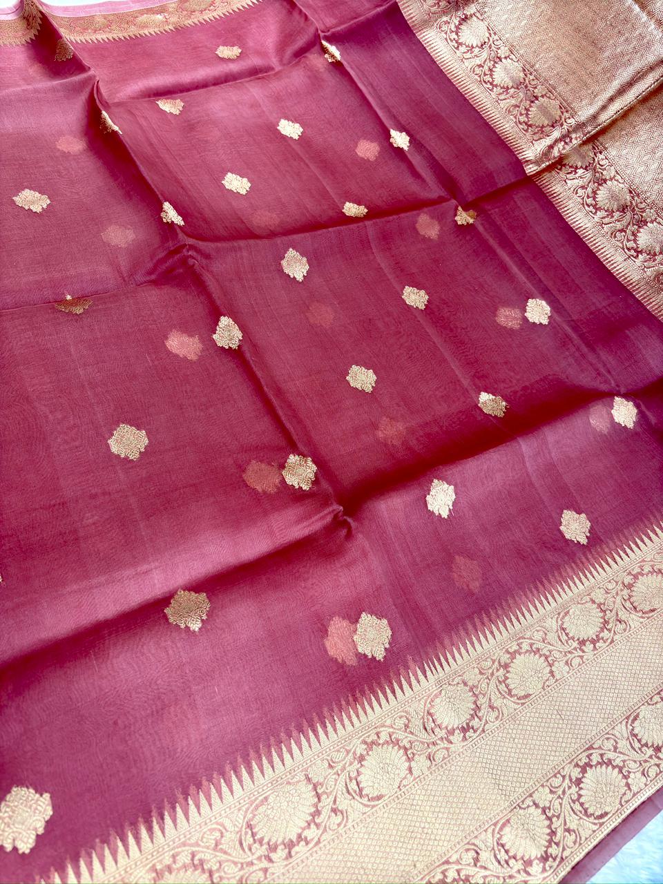 Ethereal Golden Bronze Kora Silk Handloom Saree with Statement Leaf Motifs