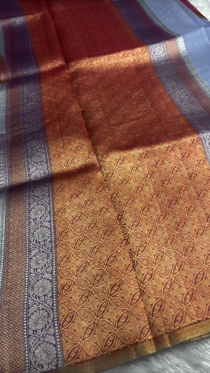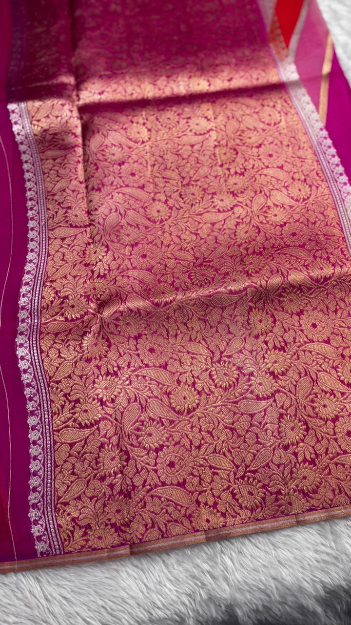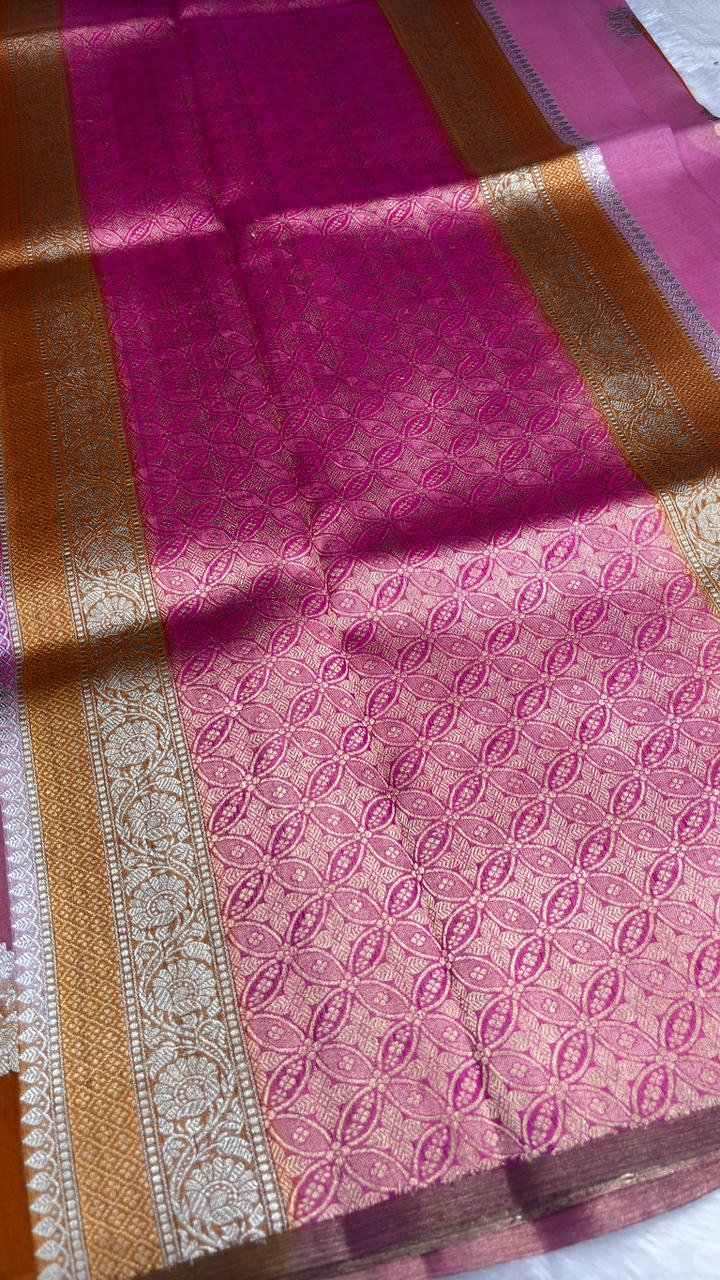 Modern Rust & Magenta Diagonal Panel Banarasi Kora Rangkaat Kadhua Saree