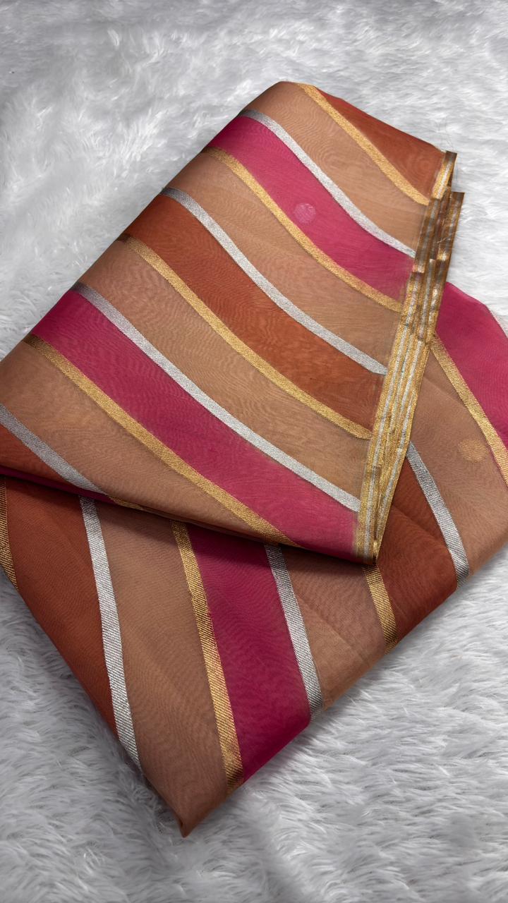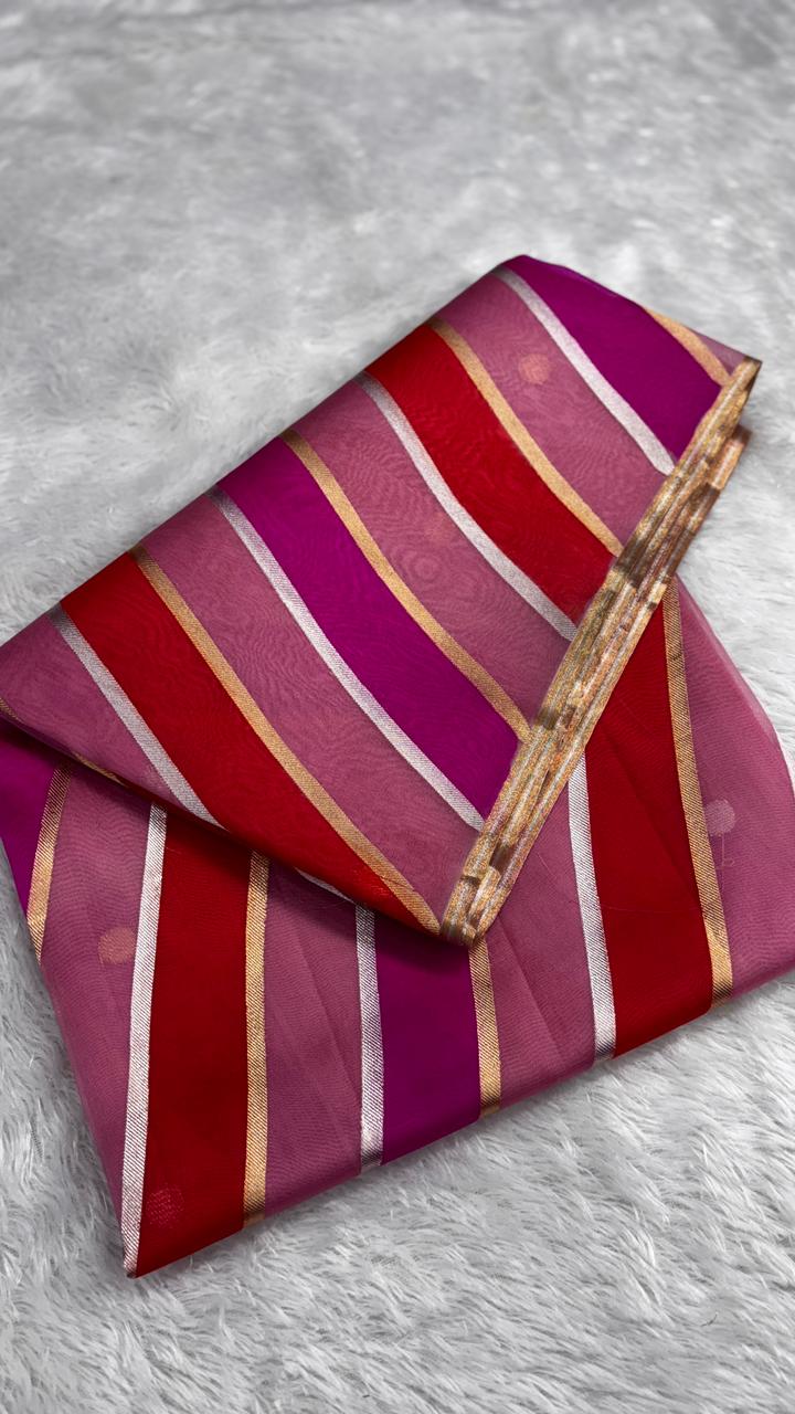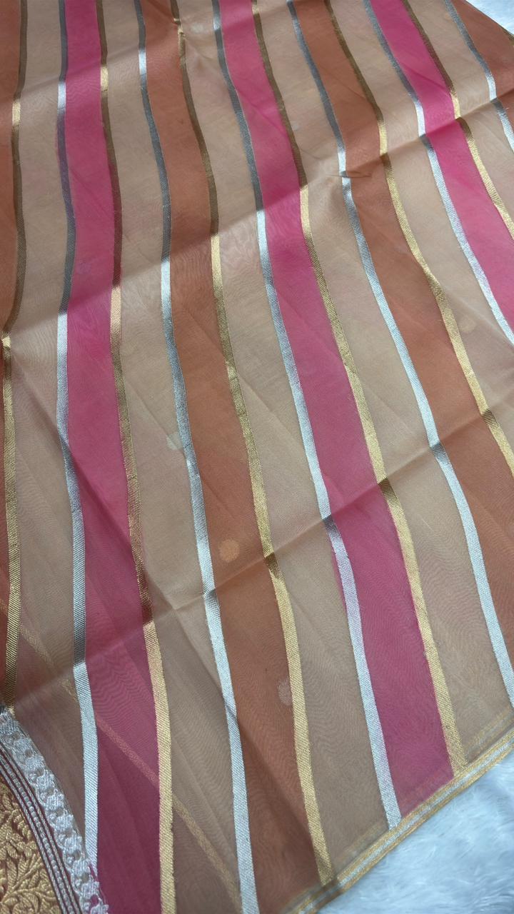 Contemporary Multi-Color Vertical Striped Banarasi Kora Rangkaat Kadhua Saree
