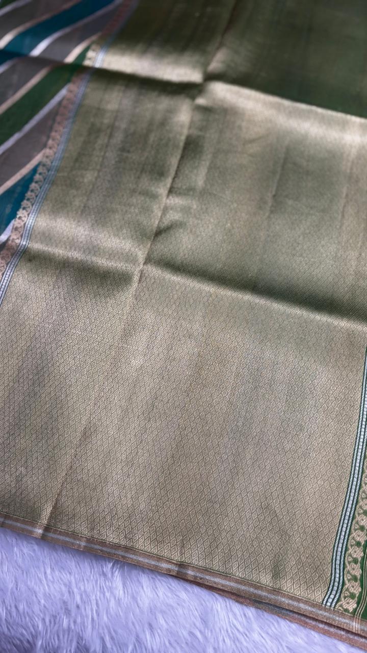 Tri-Color Leheriya Half-and-Half Banarasi Kora Rangkaat Kadhua Saree