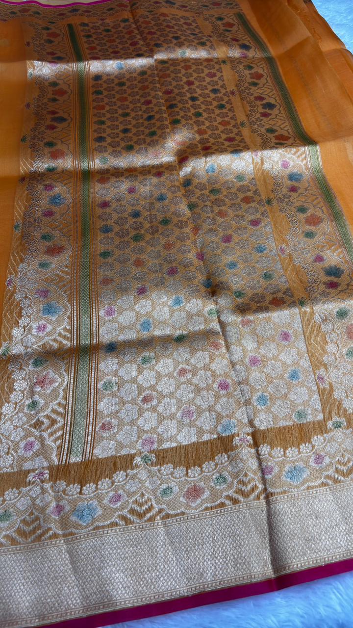 Radiant Mustard Yellow Banarasi Kora Rangkaat Kadhua Saree with Meenakari Zari Work