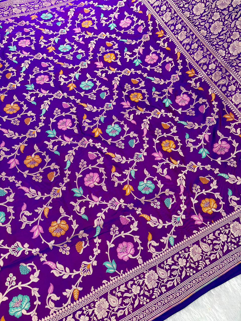 Regal Midnight Purple Mashru Silk Banarasi Saree with Meenakari Floral Jaal