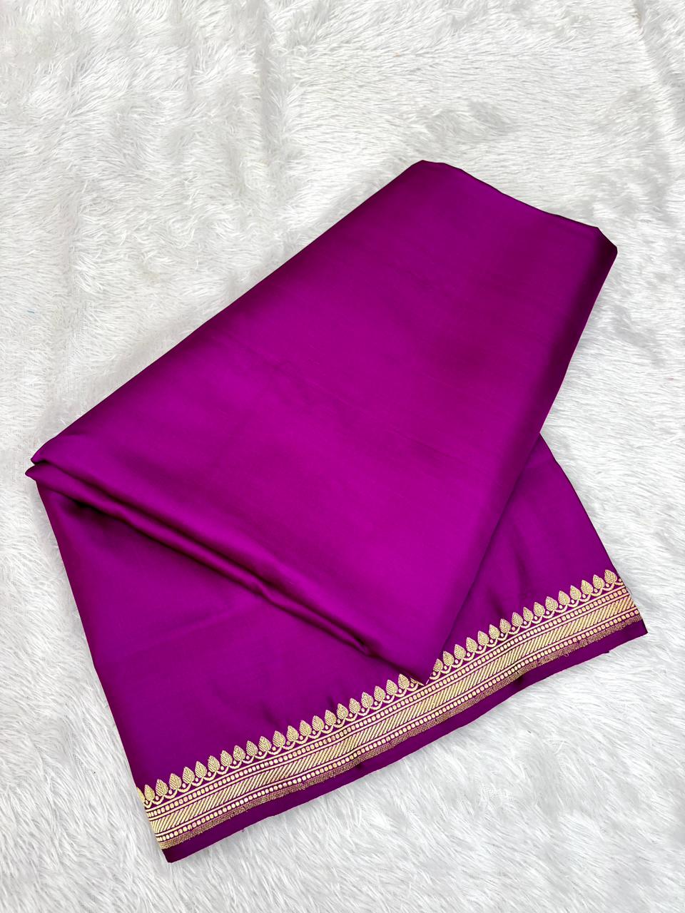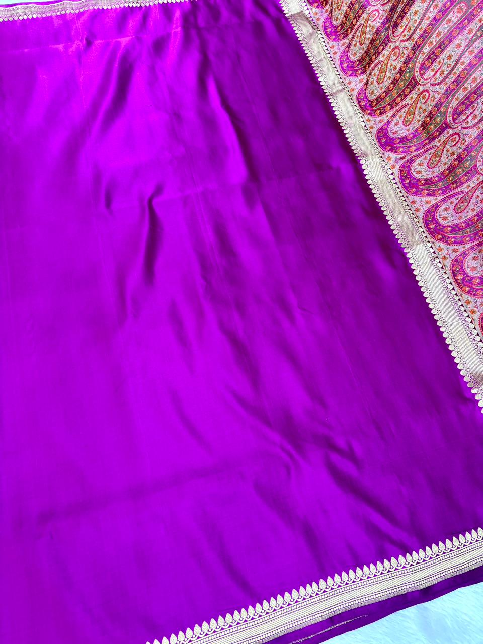 Premium Deep Purple Banarasi Mushru Silk Saree with Floral Bel & Grand Paisley Pallu
