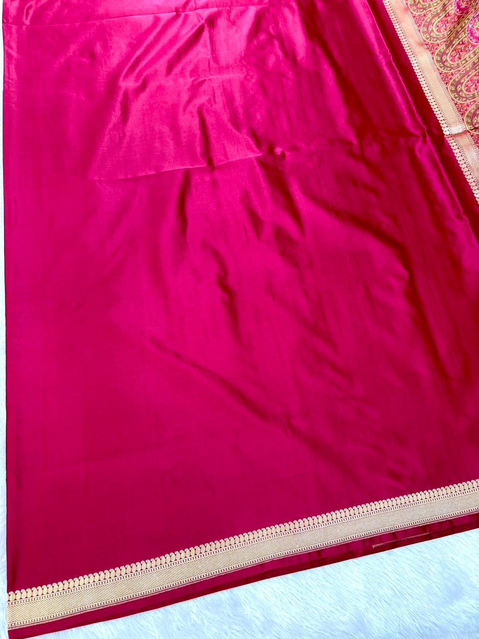 Premium Rose Pink Banarasi Mushru Silk Saree with Floral Bel-Booti and Heritage Paisley Pallu