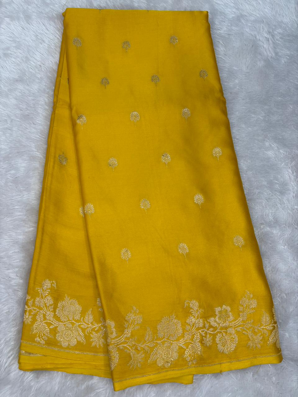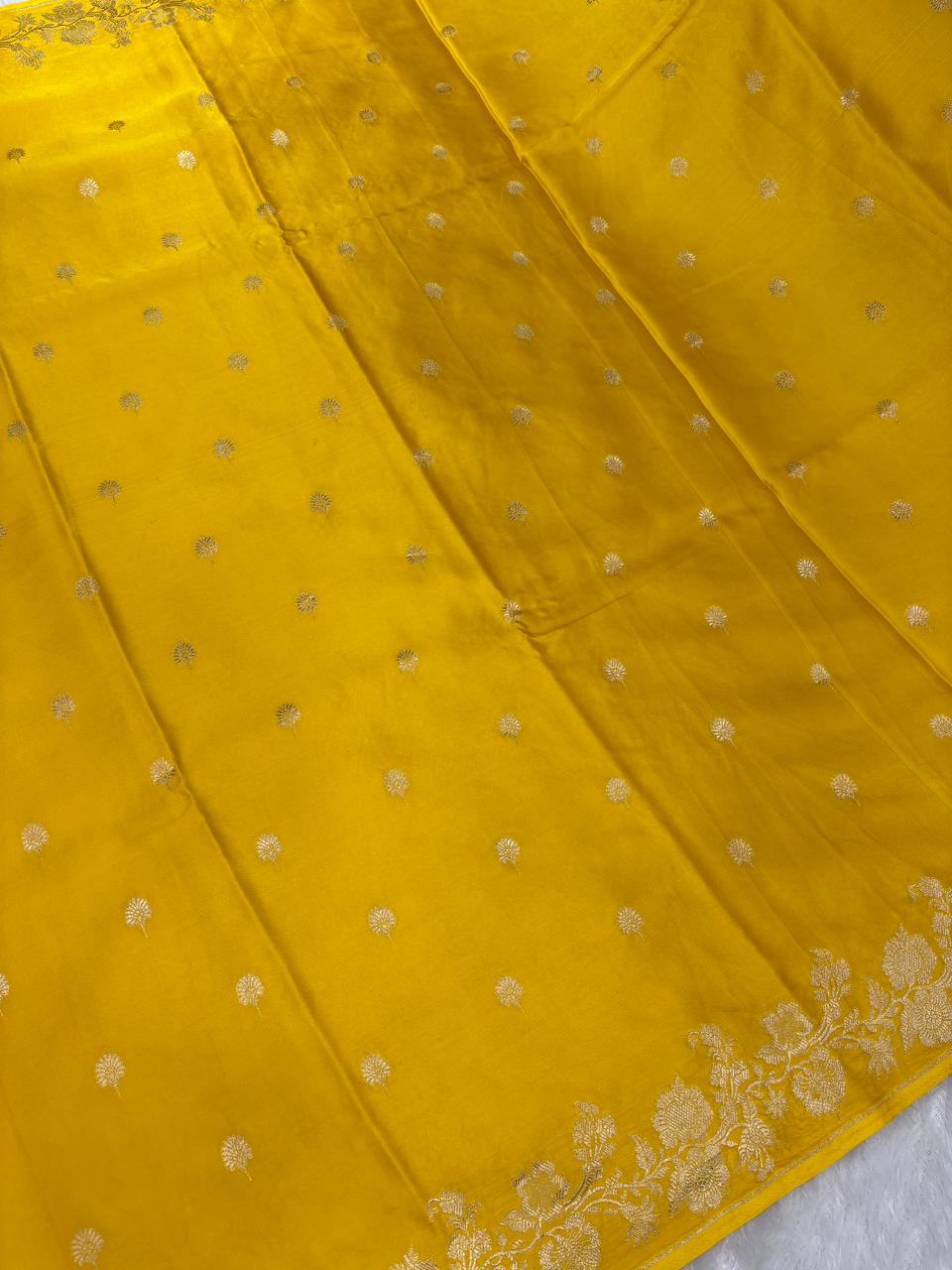 Radiant Turmeric Yellow Banarasi Mashru Silk Saree