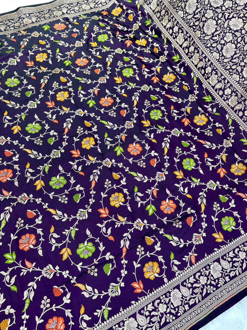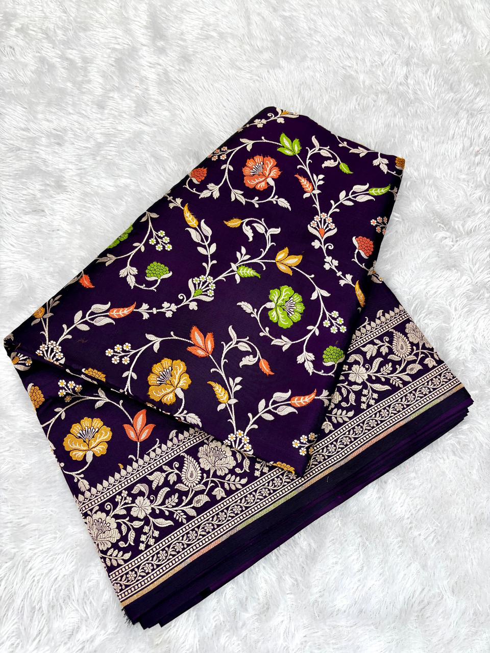 Regal Deep Wine Mashru Silk Banarasi Saree with Vibrant Meenakari Floral Jaal