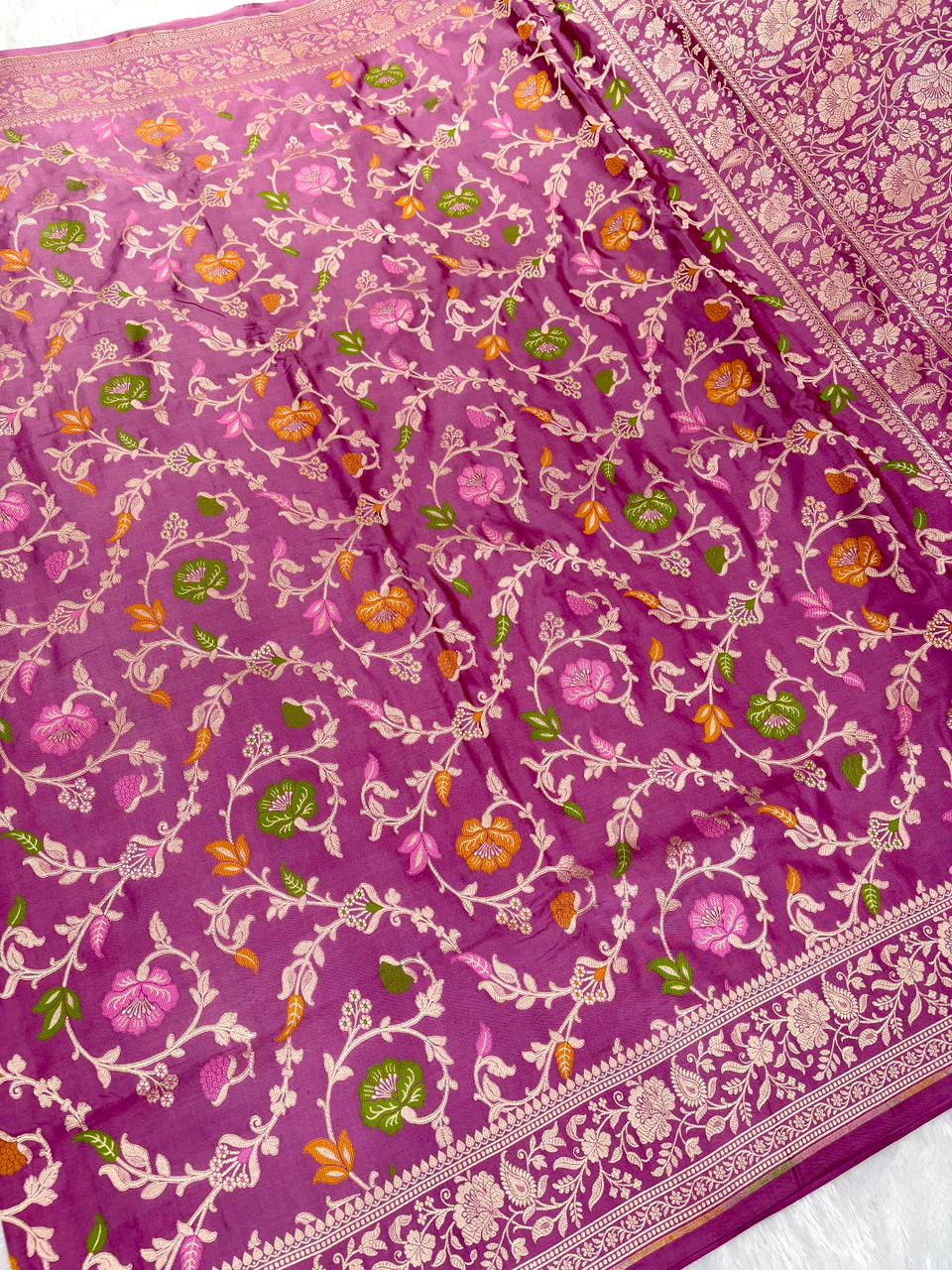 Elegant Mauve-Pink Mashru Silk Banarasi Saree with Meenakari Floral Jaal