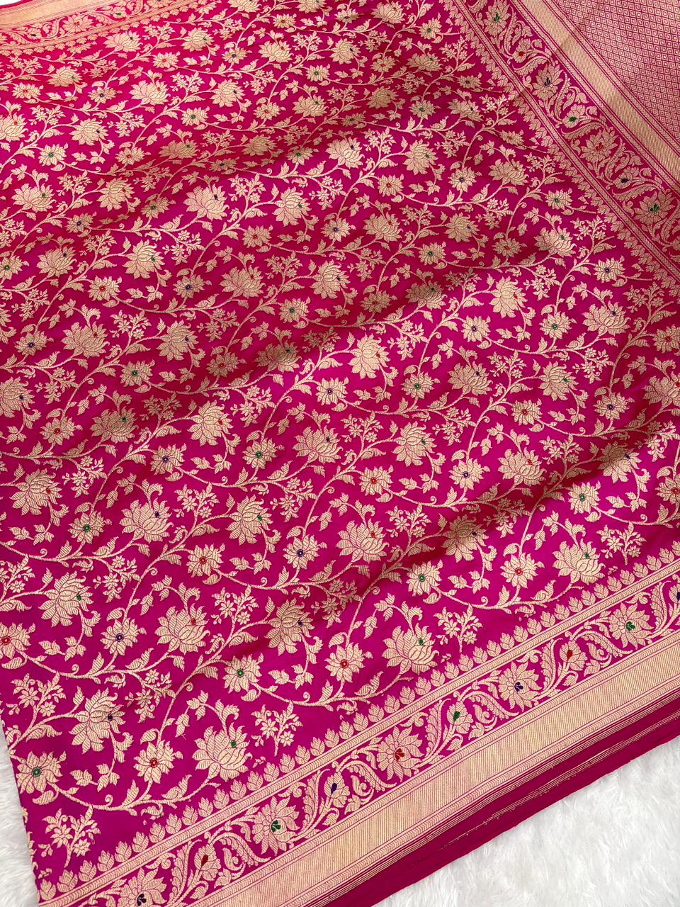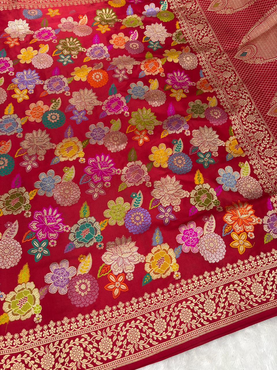 Imperial Vermilion MeenakariPremium Kadhua Jungla: Pure Katan Silk Handloom Banarasi Saree