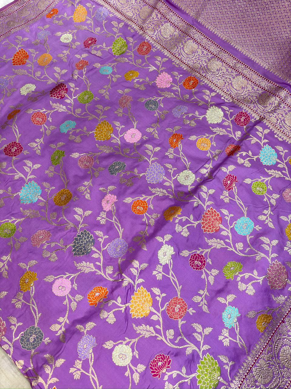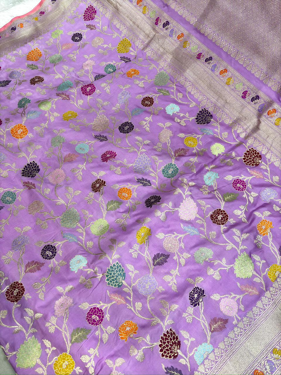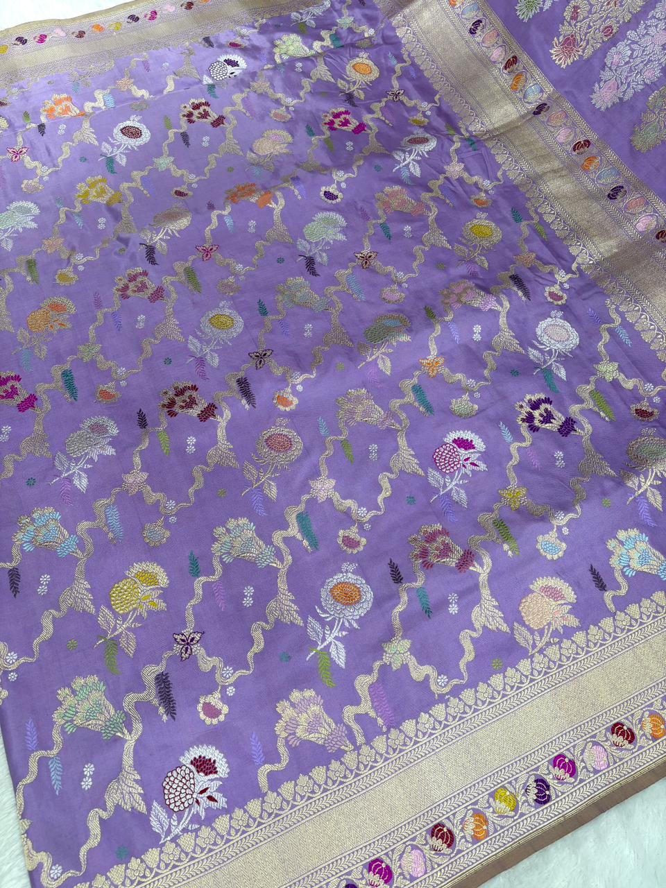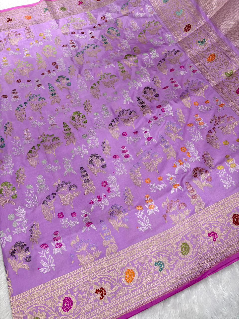 Lavender Lilac Premium Kadhua Jungla Banarasi Handloom Saree in Pure Katan Silk