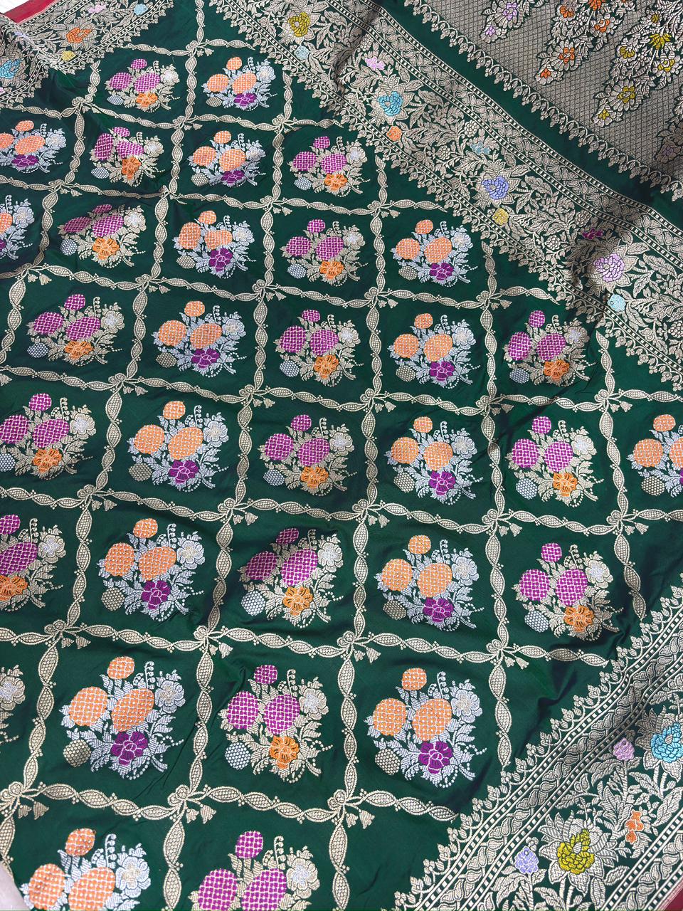 Banarasi Kadhua Jungla Saree in Emerald Jade Katan Silk with Jaal Pattern and Meenakari