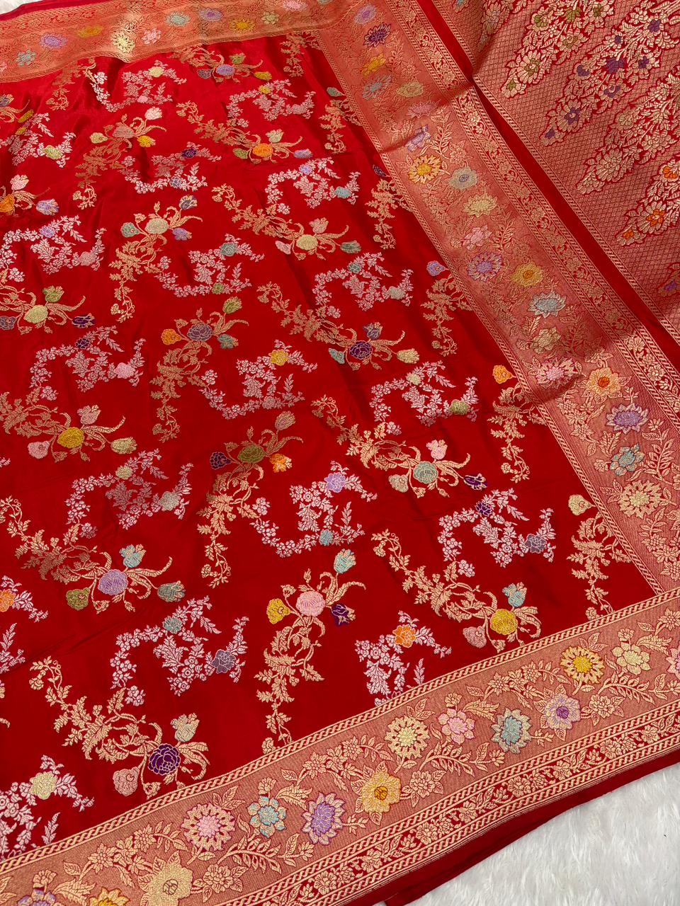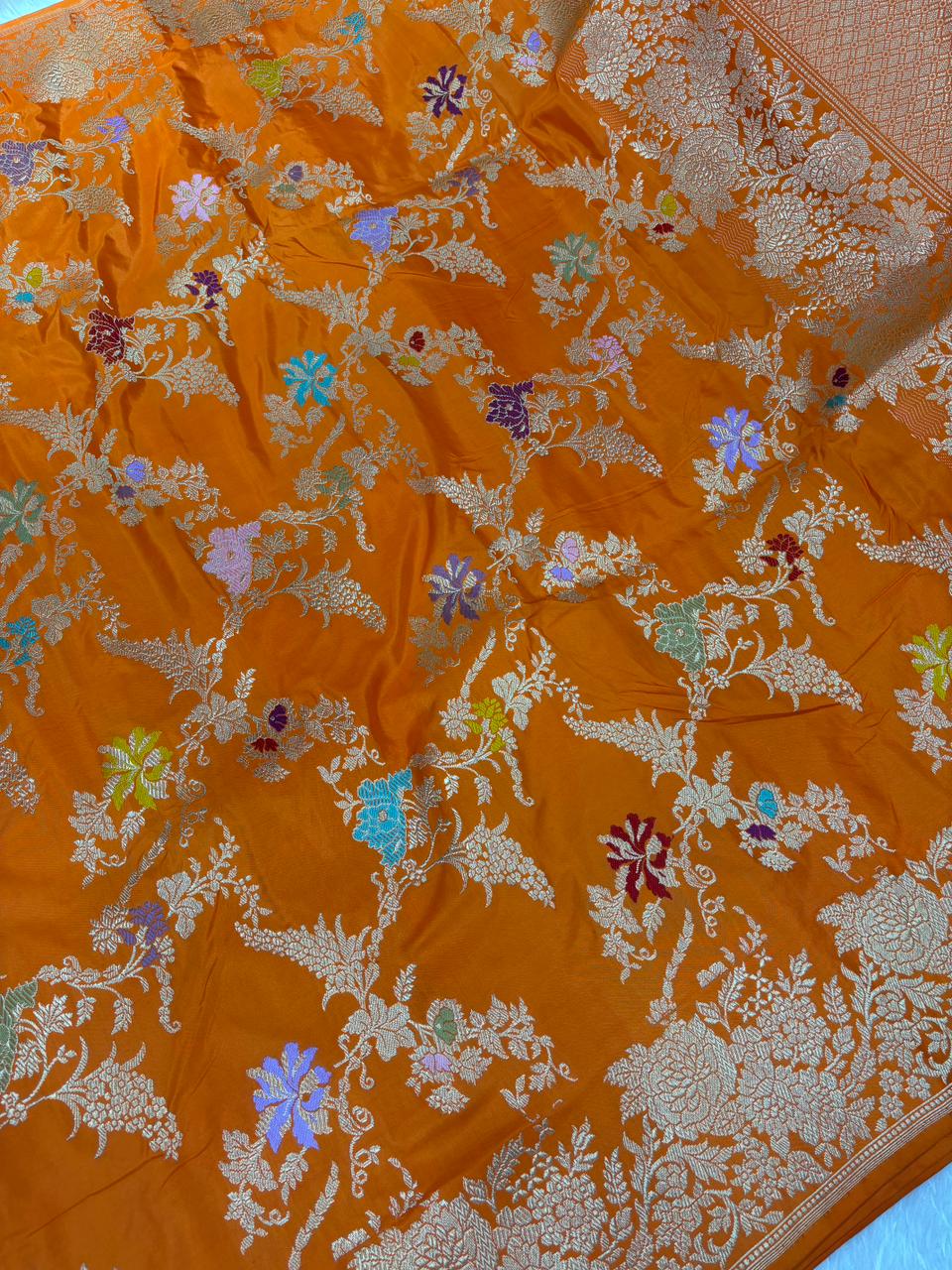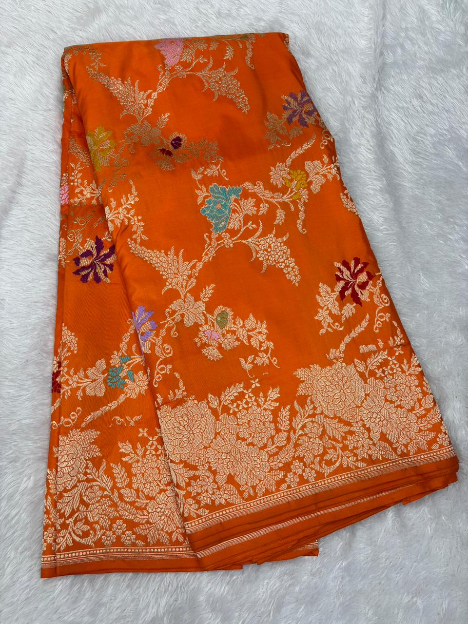 Vibrant Orange: Premium Kadhua Jangla Handloom Banarasi Silk Saree with Meenakari Work