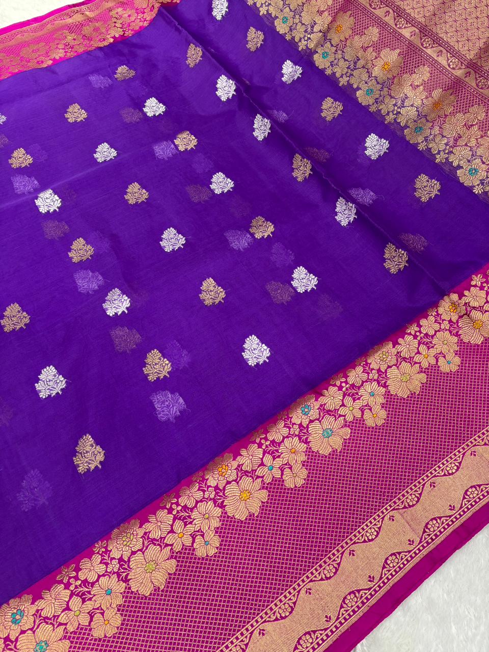 The Jewel of Banaras: Royal Violet & Magenta Kora Kadhua Handloom Saree