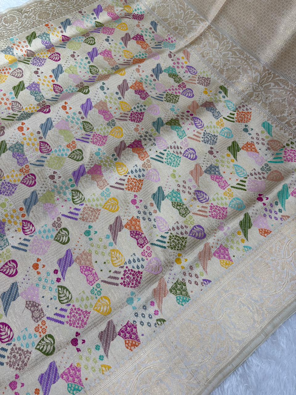 The Ivory Mosaic – Premium Kinkhwab with Meenakari Geometric Handloom Saree