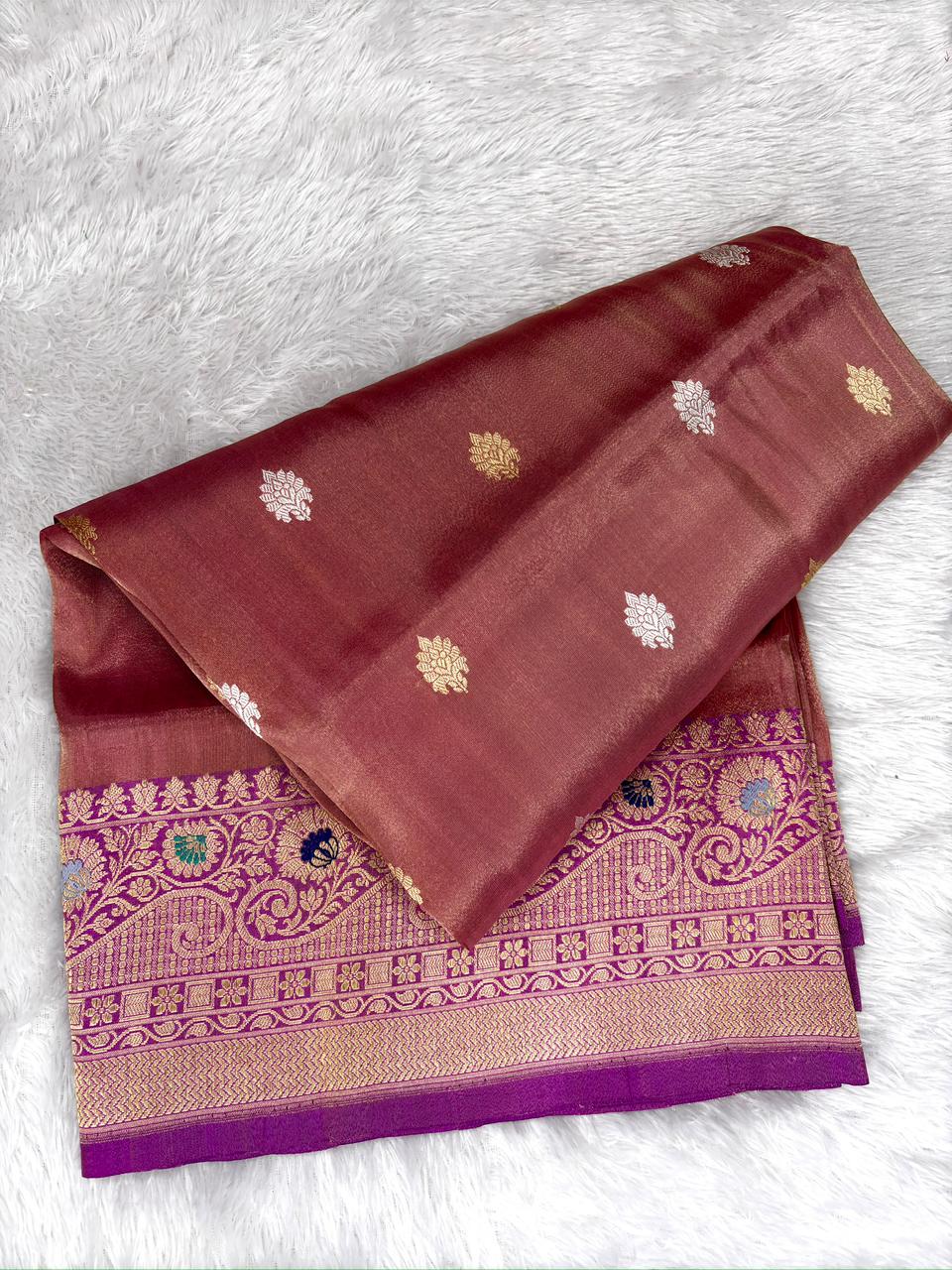 Regal Rust Copper Tissue Silk Saree with Meenakari Floral Border