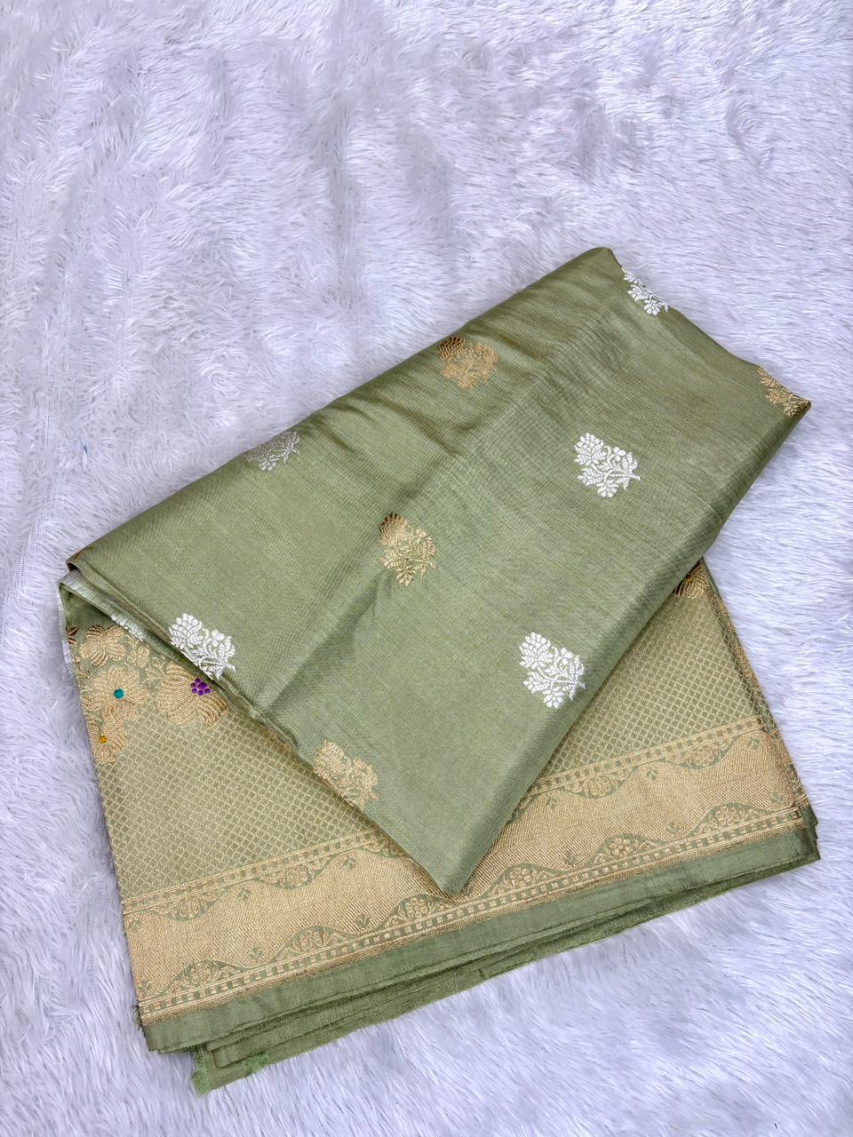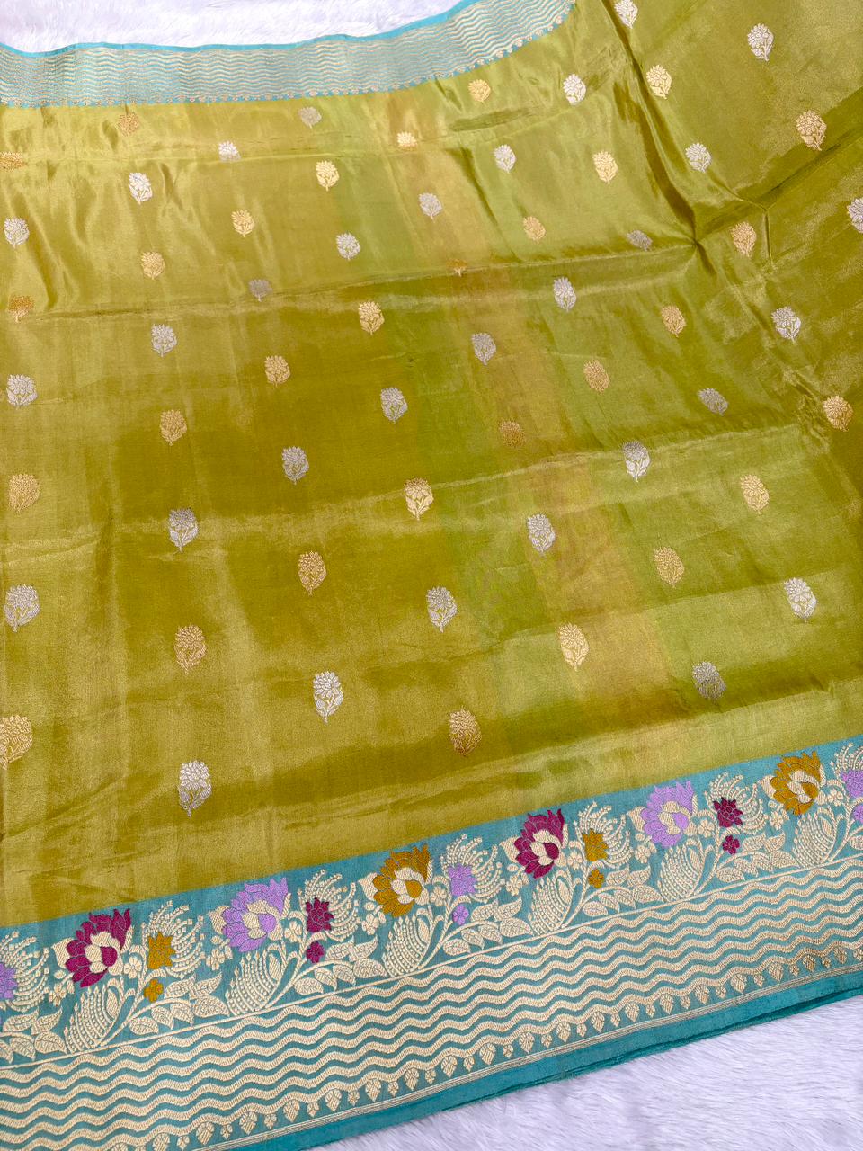 Refreshing Sea Green Premium Tissue Silk Saree with Meenakari Floral Border