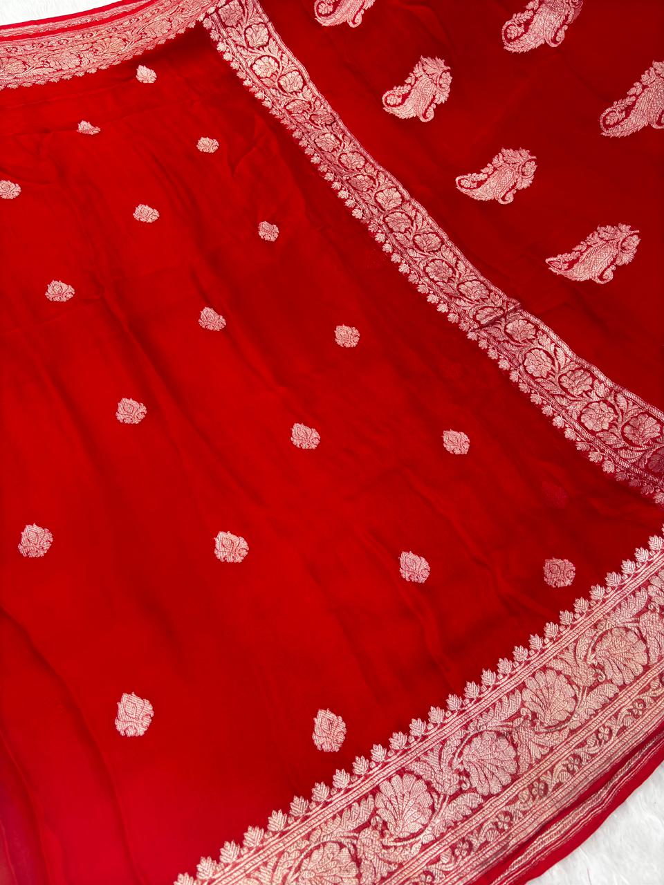 The Crimson Queen: Pure Khaddi Chiffon Banarasi Saree