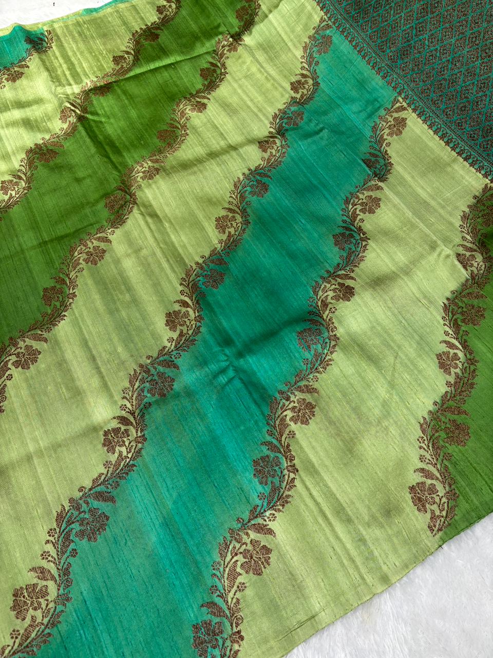 Verdant Dual-Tone Green Rungkaat Raw Silk Tussar Handloom Saree