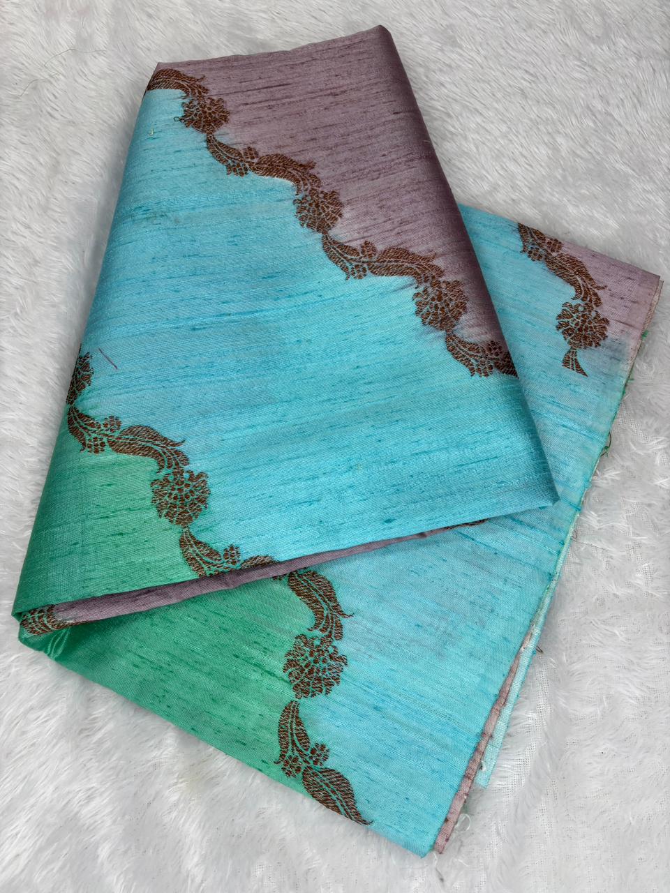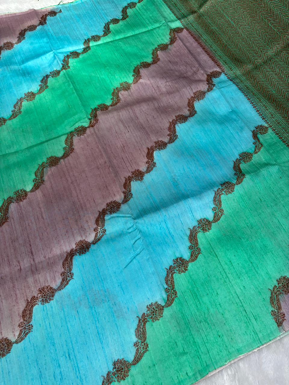 Mystic Purple & Olive Green Rungkaat Raw Silk Tussar Handloom Saree