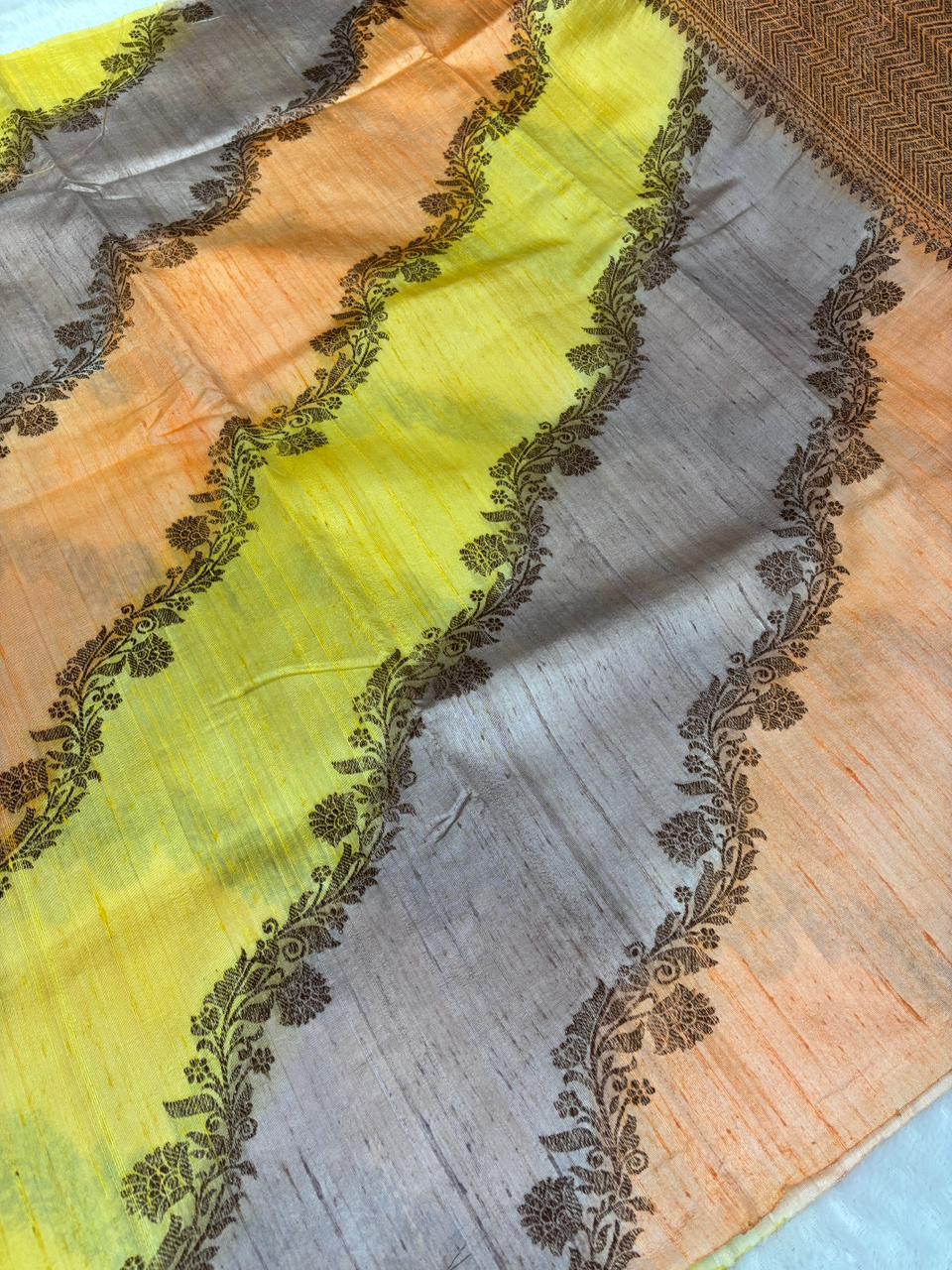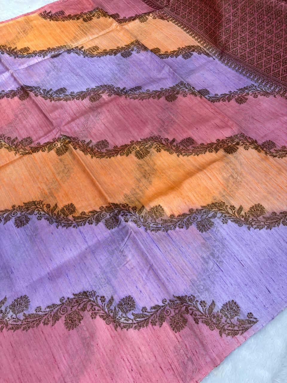 Sunset Symphony Multi-Color Rungkaat Raw Silk Tussar Handloom Saree