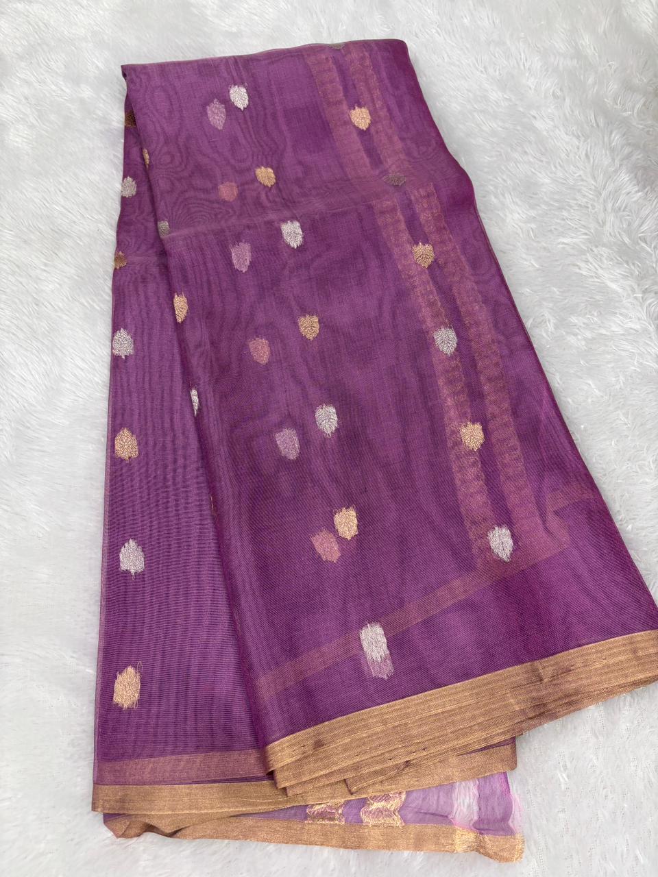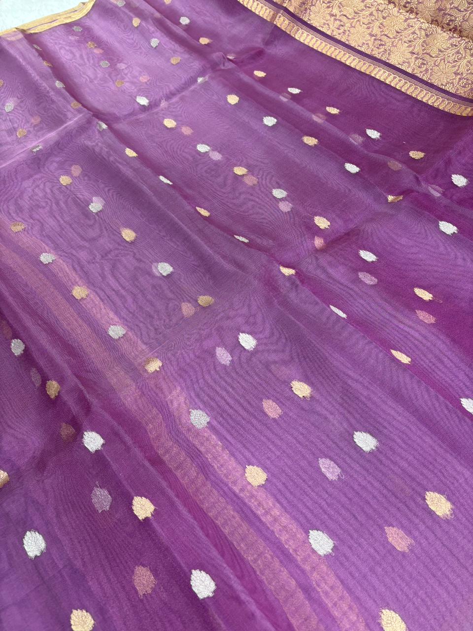 The Luminous Mauve: Pure Banarasi Tissue Silk Saree