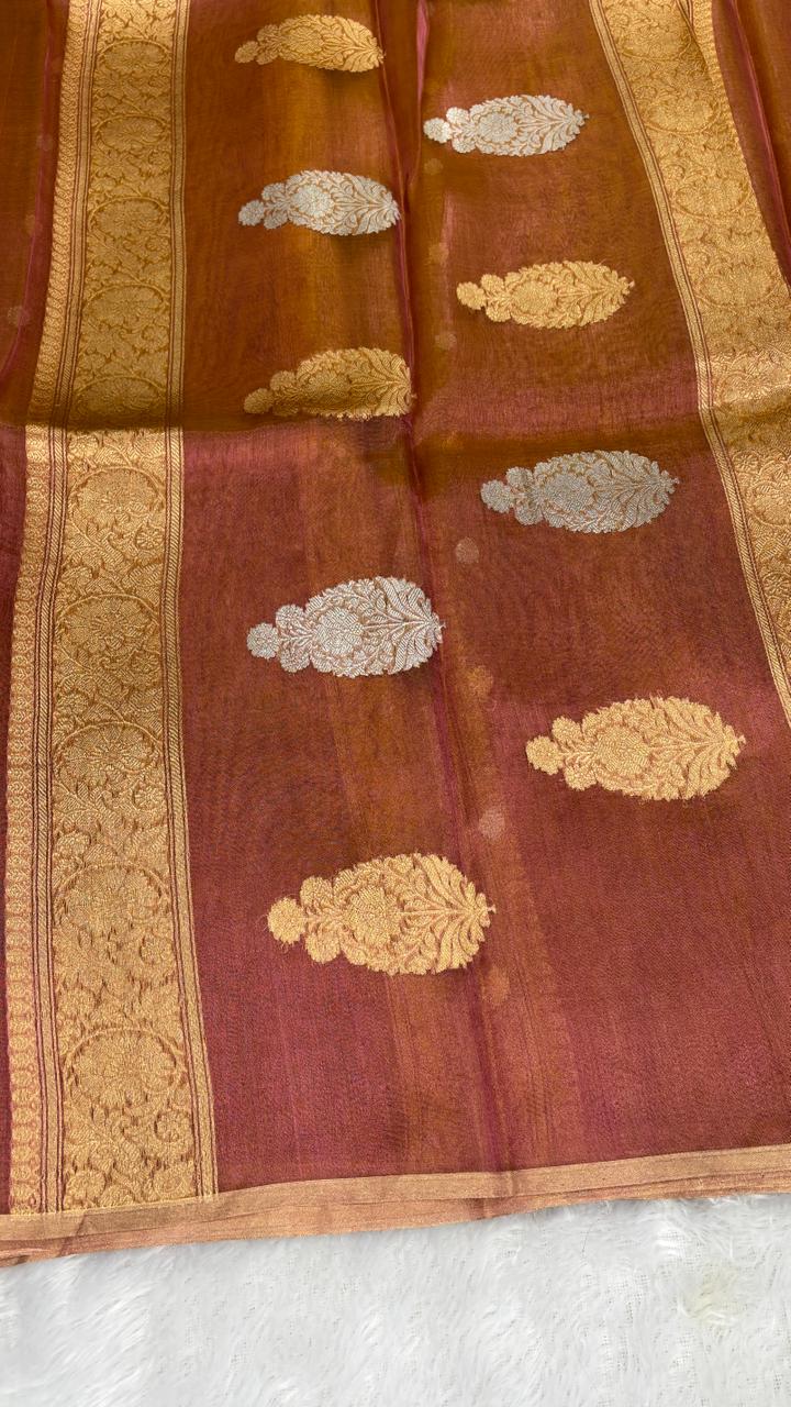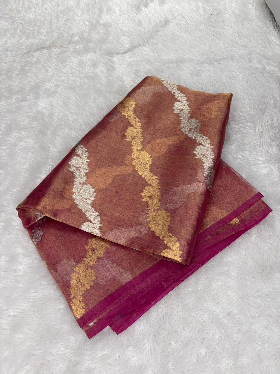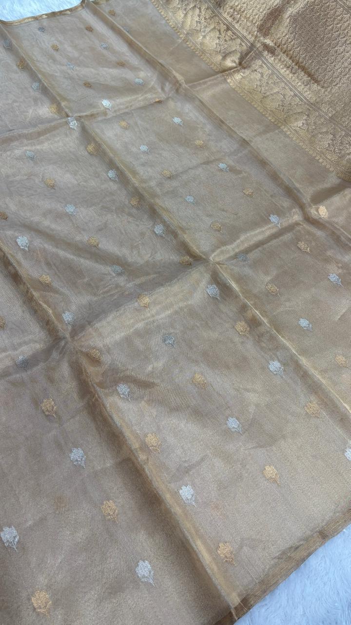The Champagne Glow: Pure Banarasi Tissue Silk Saree