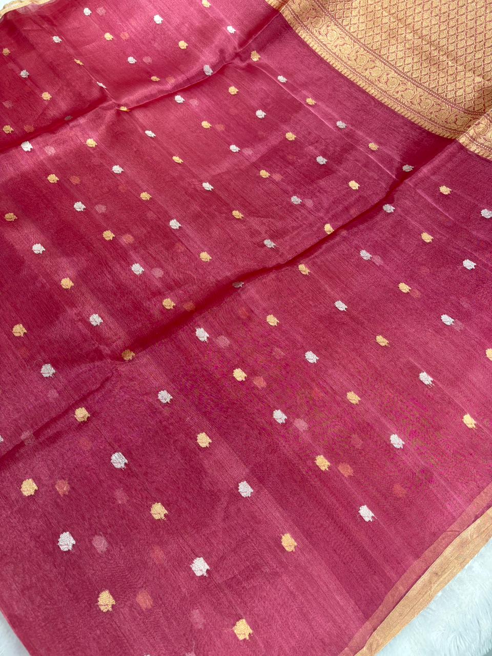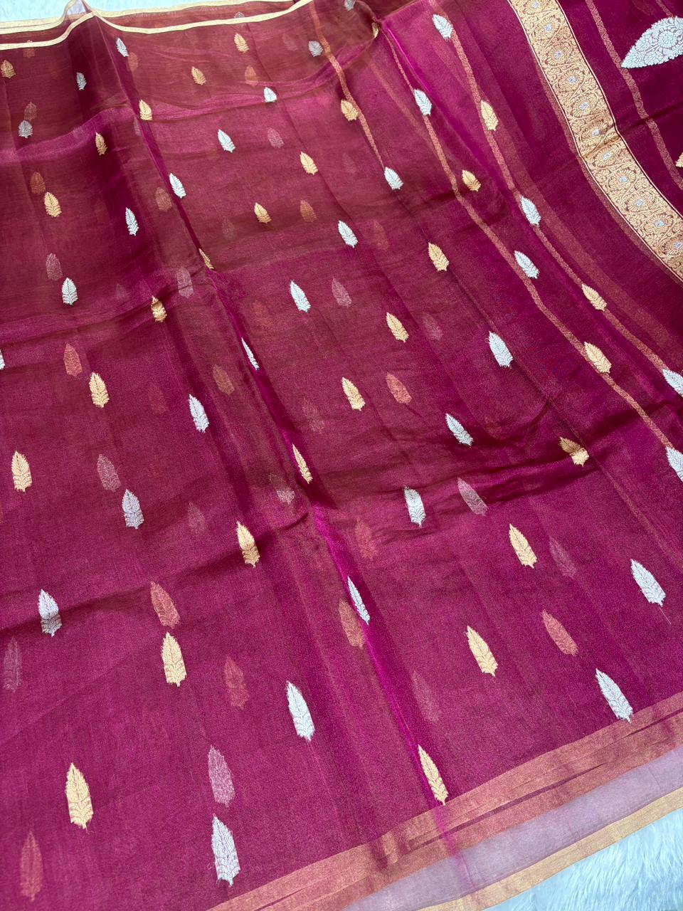 The Majestic Maroon: Deep Wine Banarasi Tissue Silk Saree