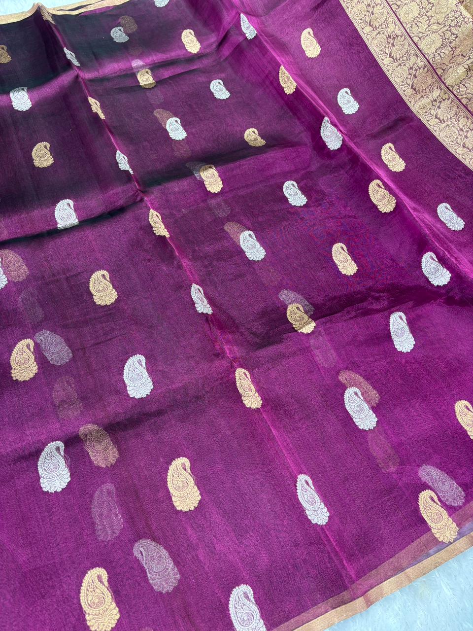 The Midnight Royal: Deep Aubergine Banarasi Tissue Silk Saree