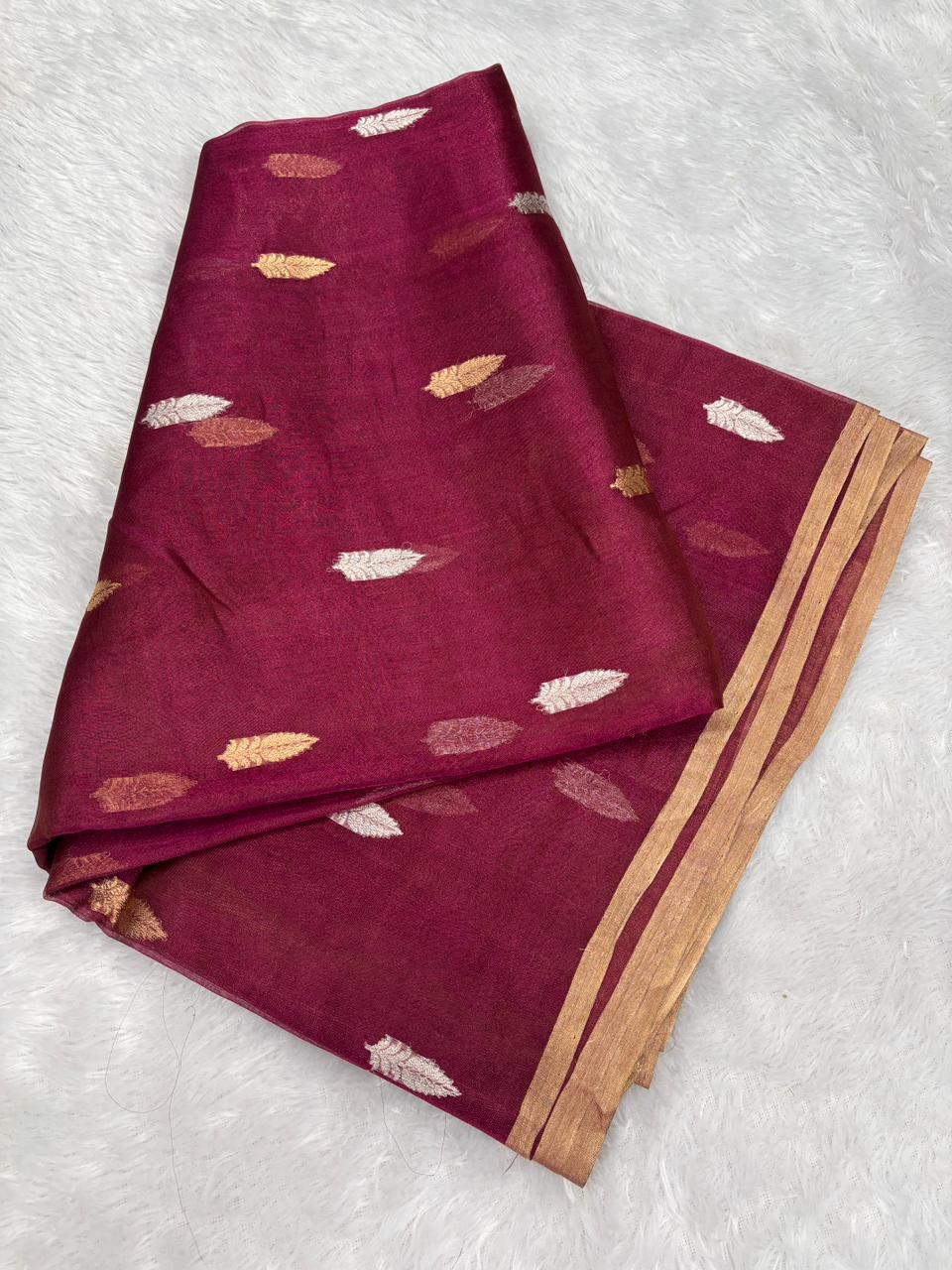 The Vintage Wine: Burgundy Banarasi Tissue Silk Saree