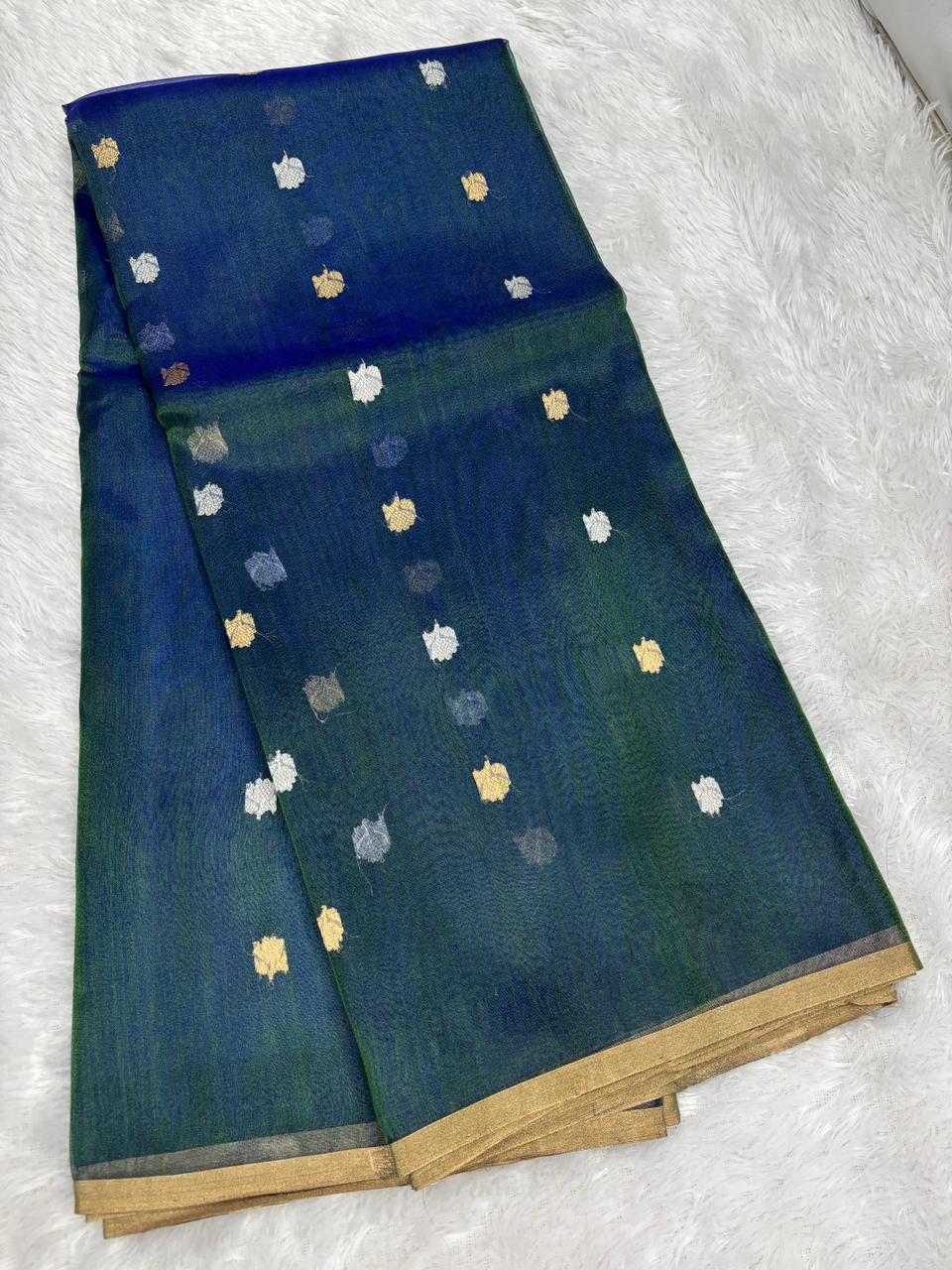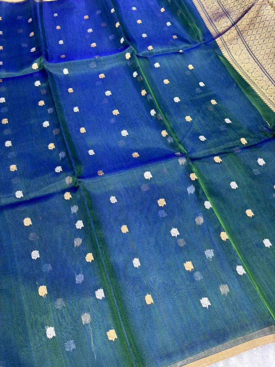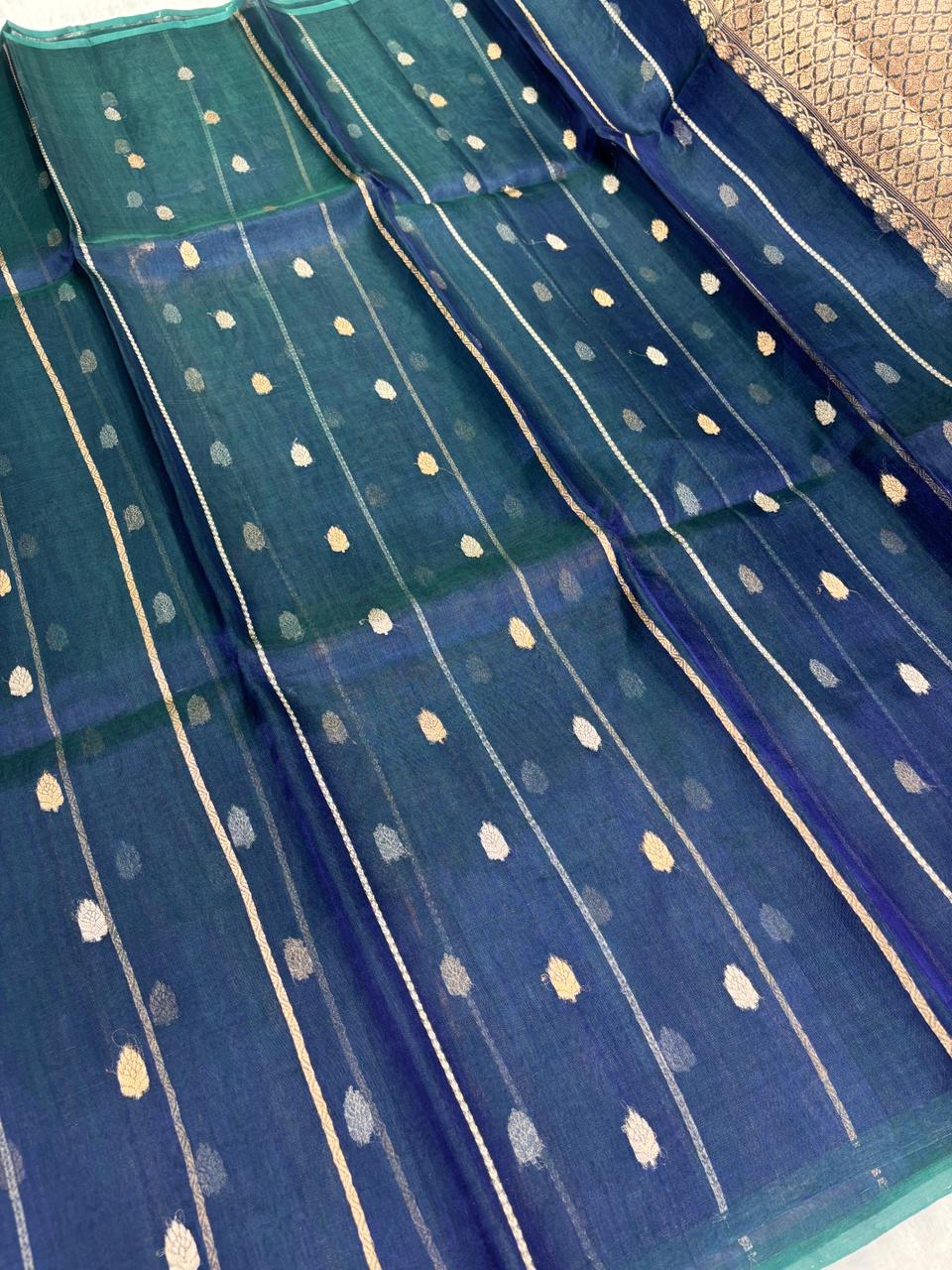 The Peacock's Pride: Dual-Tone Teal Banarasi Tissue Silk Saree