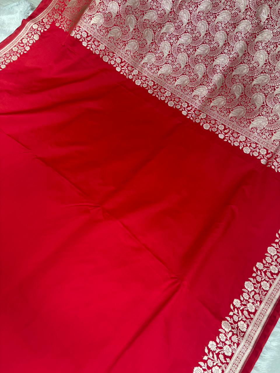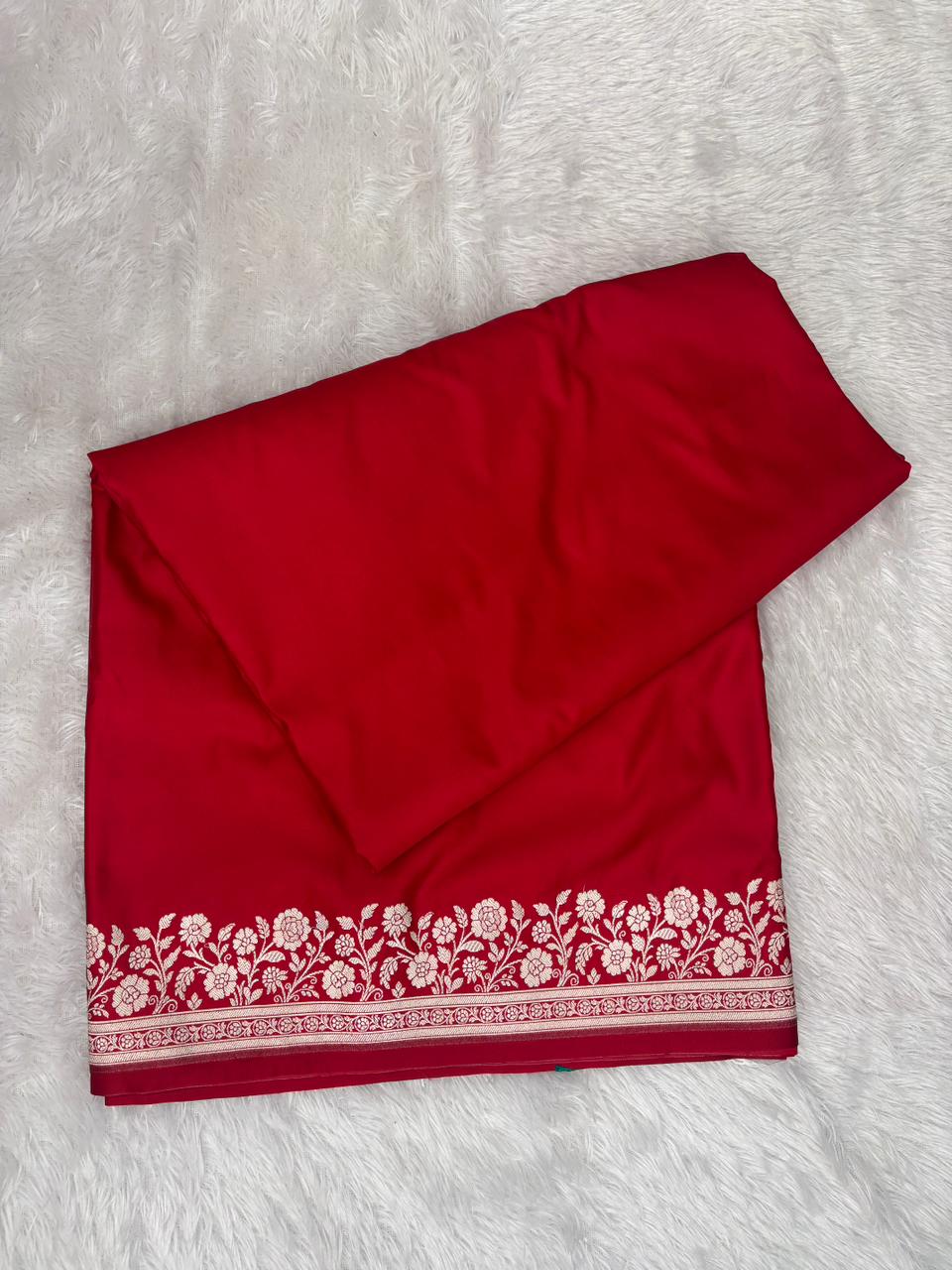 Royal Sindoor Red Mashru Katan Silk Powerloom Saree with Antique Zari Floral Border & Paisley Pallu