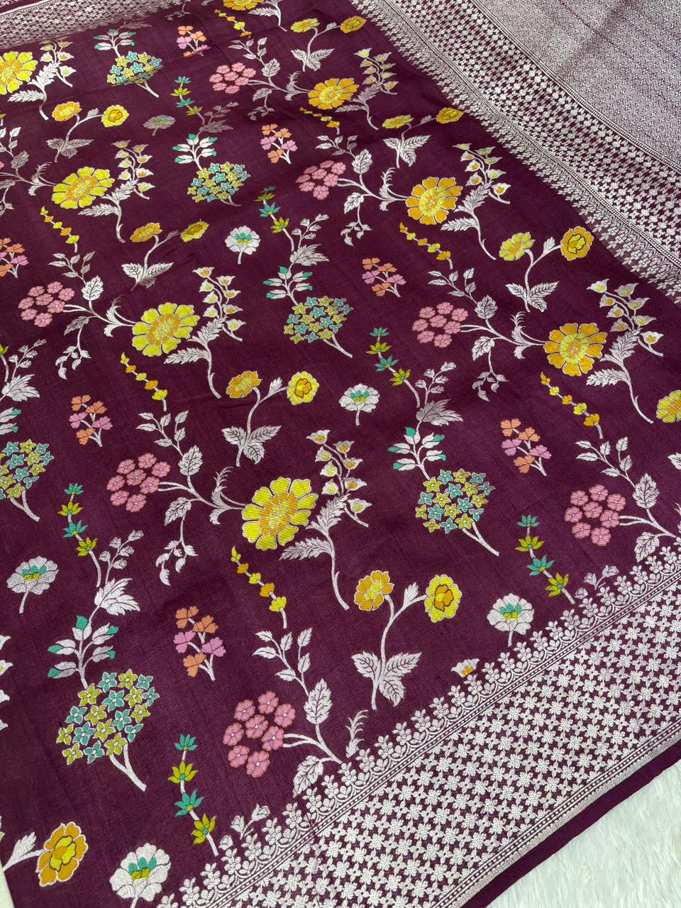 Royal Wine Tussar Georgette Banarasi Handloom Saree