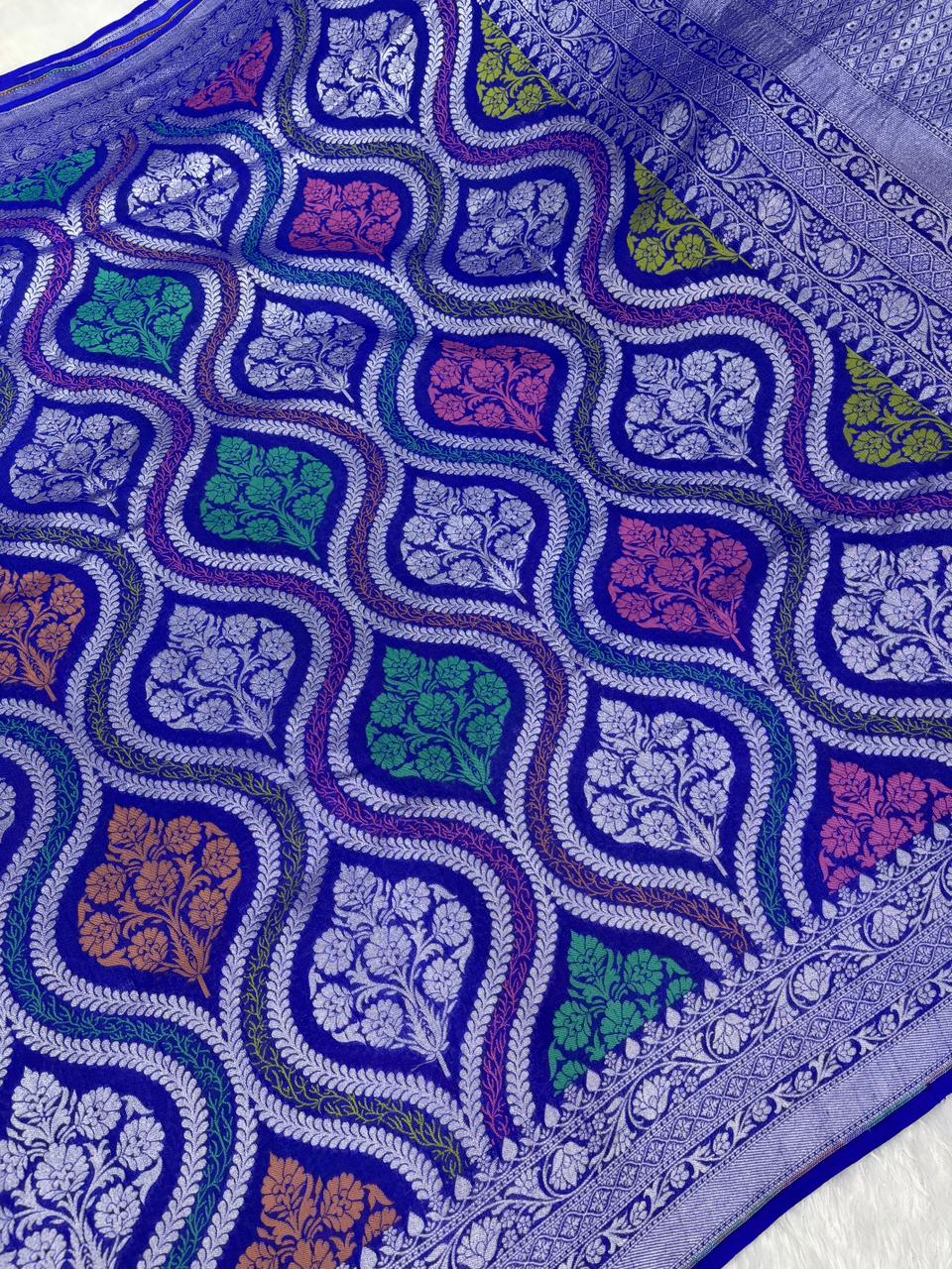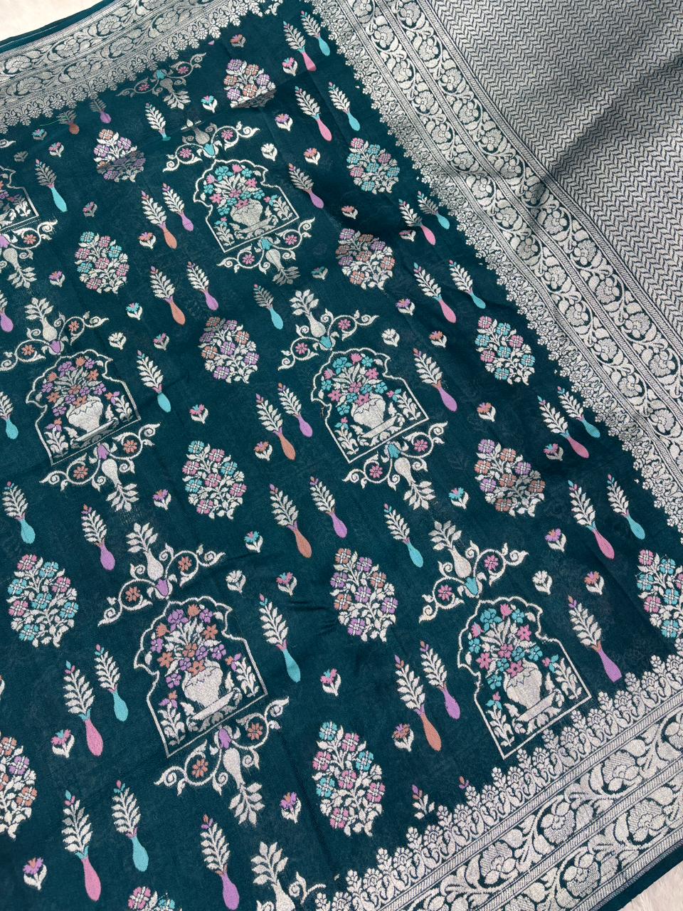 Luxurious Deep Teal Tussar Georgette Banarasi Handloom Saree