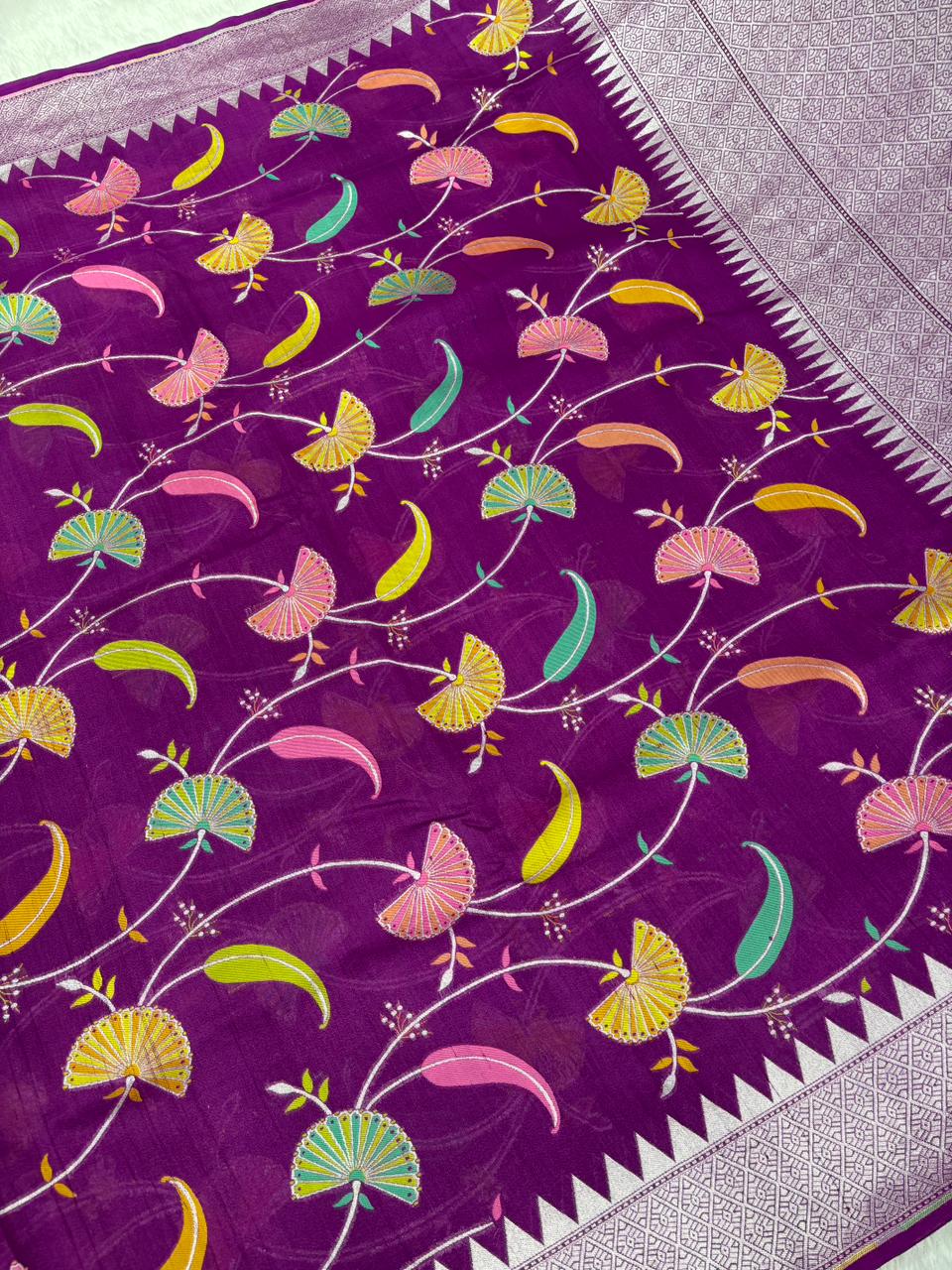 Enchanting Purple Tussar Georgette Banarasi Saree
