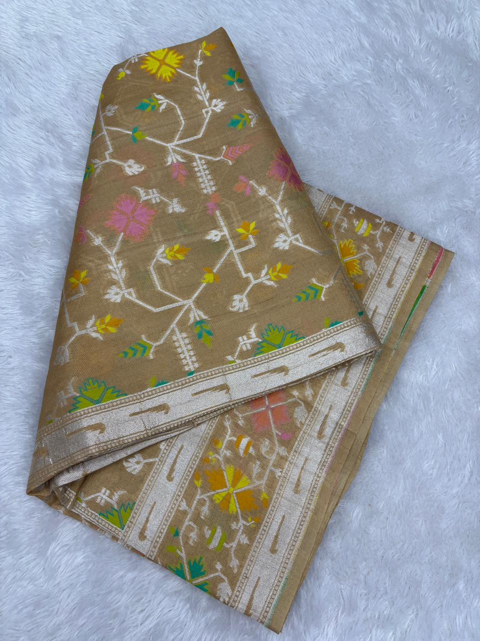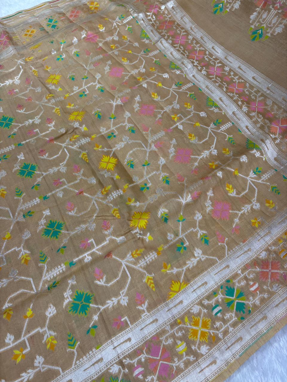 Sophisticated Beige Tussar Georgette Banarasi Saree