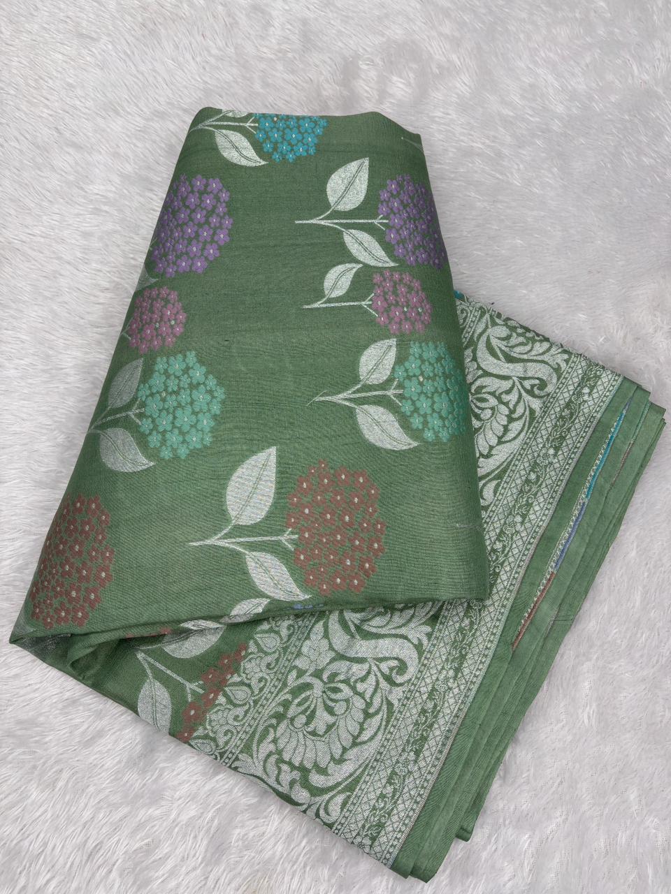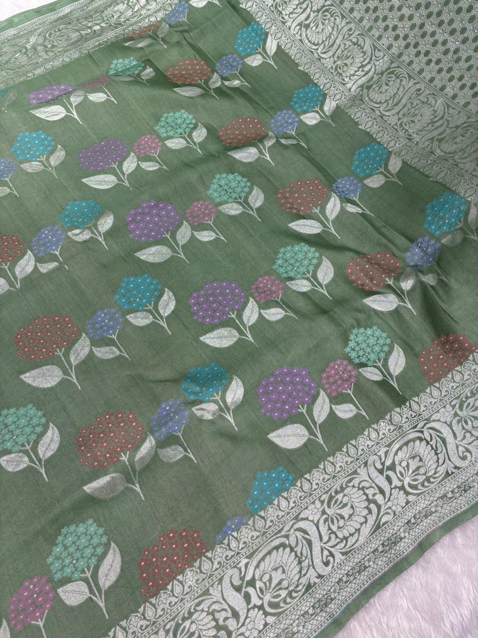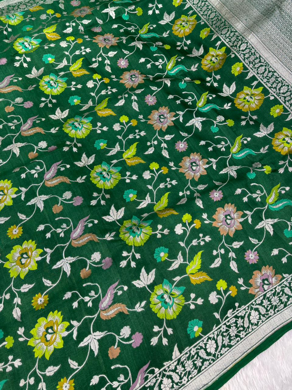 Lush Bottle Green Tussar Georgette Banarasi Saree