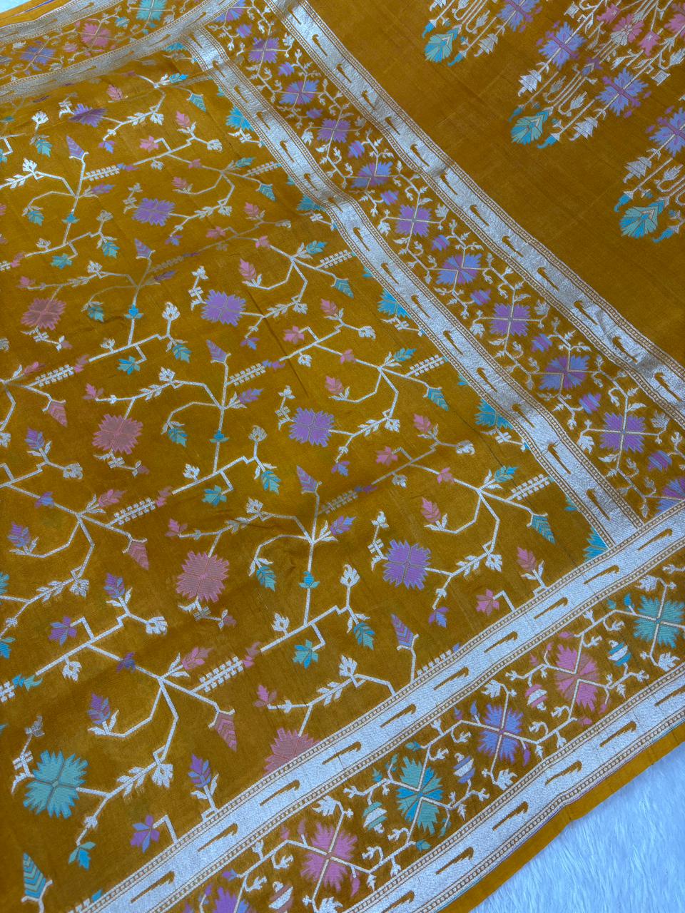 Radiant Mustard Yellow Tussar Georgette Banarasi Saree