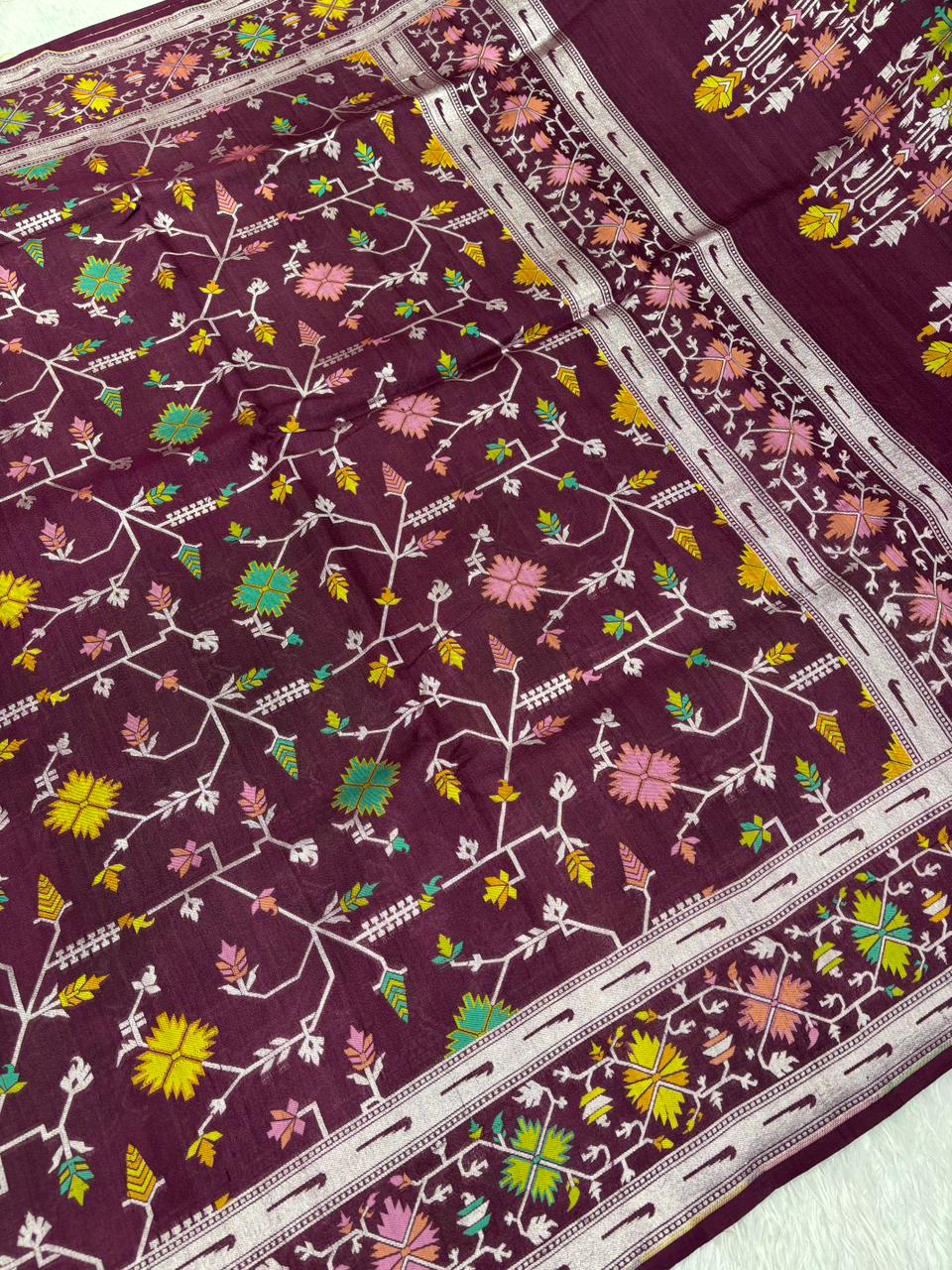 Regal Wine Maroon Tussar Georgette Saree