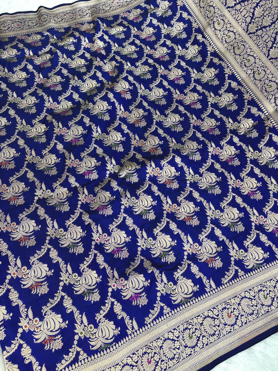 Royal Blue Handwoven Katan Silk Banarasi Saree | Full Meenakari Jungla Jaal & Ornate Zari Pallu