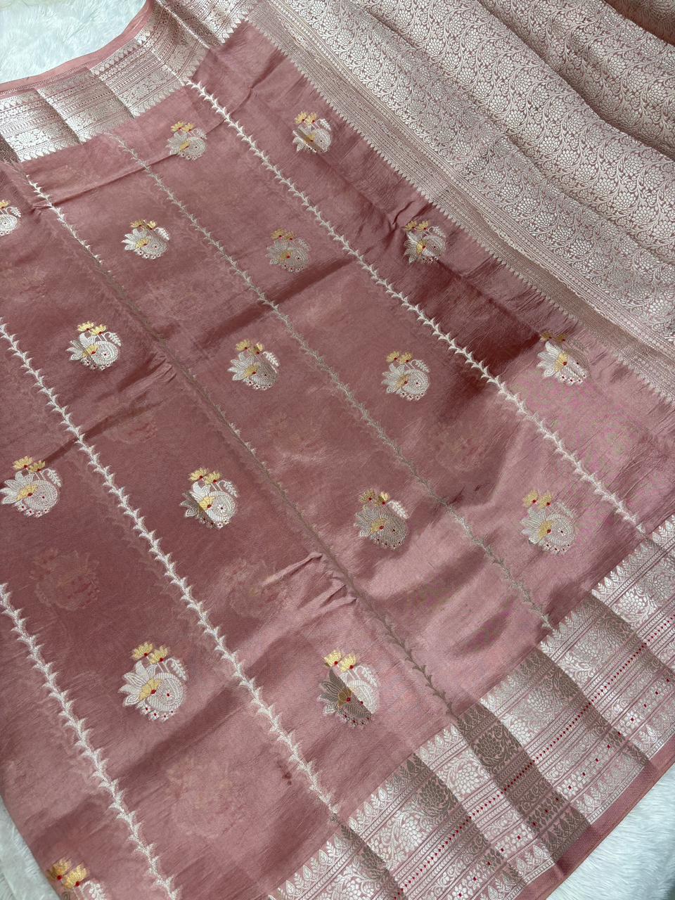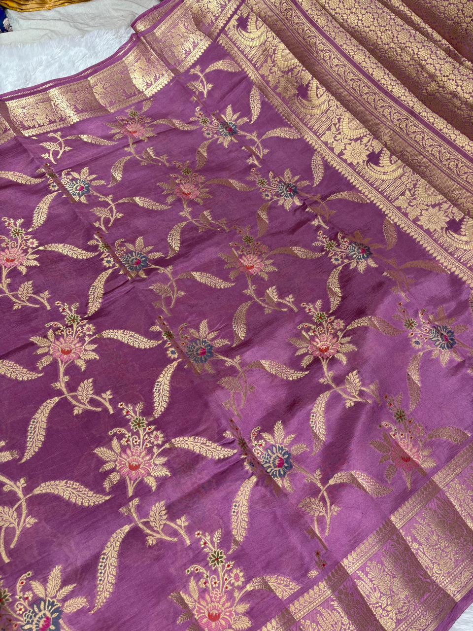 Handwoven Dusty Mauve Katan Silk Saree with Meenakari Floral Jaal