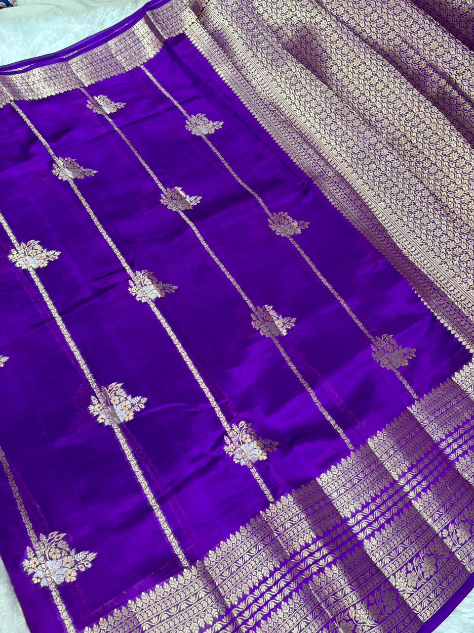 Handwoven Violet Katan Silk Saree with Meenakari Floral Butas & Gold Zari