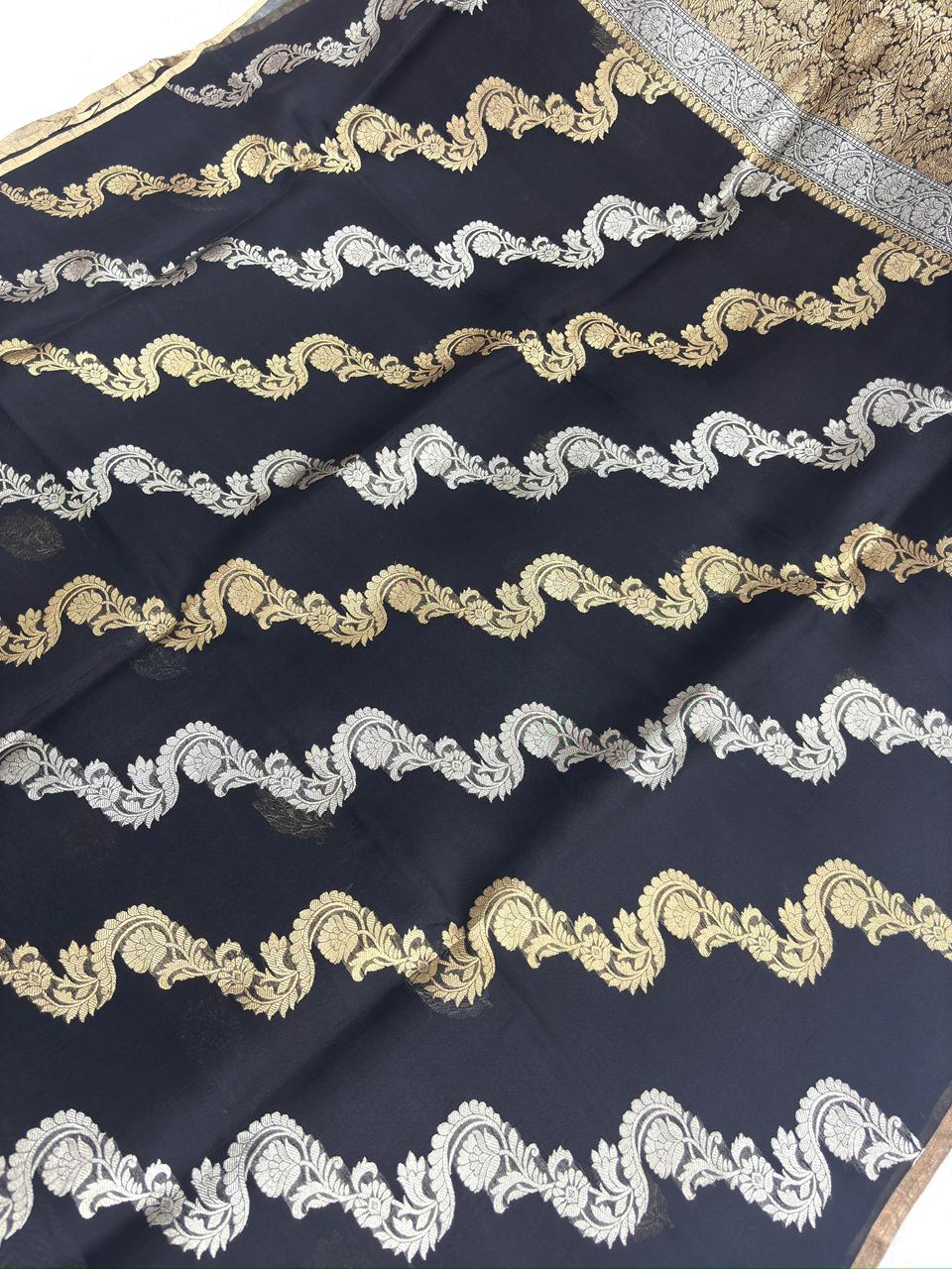 Black Kora Designer Kadhua Silk ( Half N Half) Saree with Bold Sona-Rupa Vines