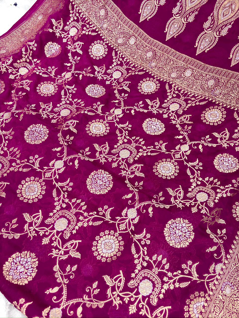 Radiant Magenta Khaddi Georgette Saree with Multi-Color Meenakari Floral Jaal