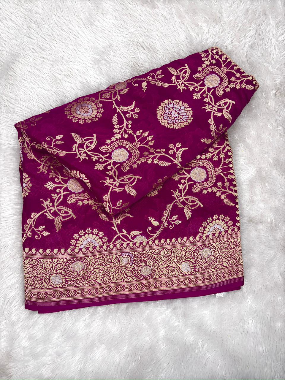 Majestic Deep Purple Khaddi Georgette Saree with Silver Zari Floral Jaal